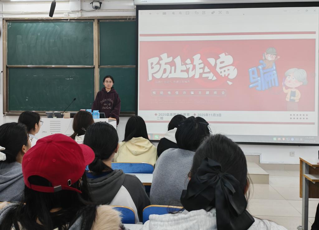 为了切实提升新生的安全防范意识与应对能力,筑牢校园防诈“防火墙”,11月3日上午,ok138cn太阳集团5292025级思想政治教育二班于社科楼514教室召开“绷紧防范之弦·远离电信诈骗”主题班会。本次班会由班长陈曦主持。