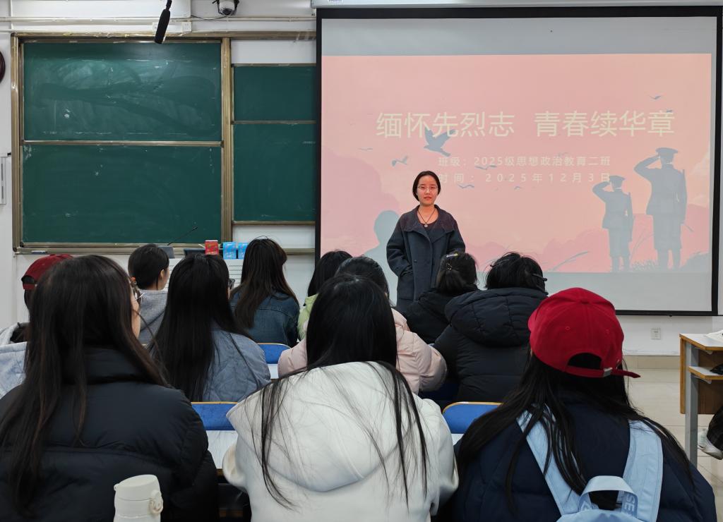 为引导同学们传承红色基因、坚定理想信念,12月16日,ok138cn太阳集团5292025级思想政治教育二班在社科楼514教室开展“缅怀先烈志,青春续华章”主题团课。活动由团支书崔锐琳主持。