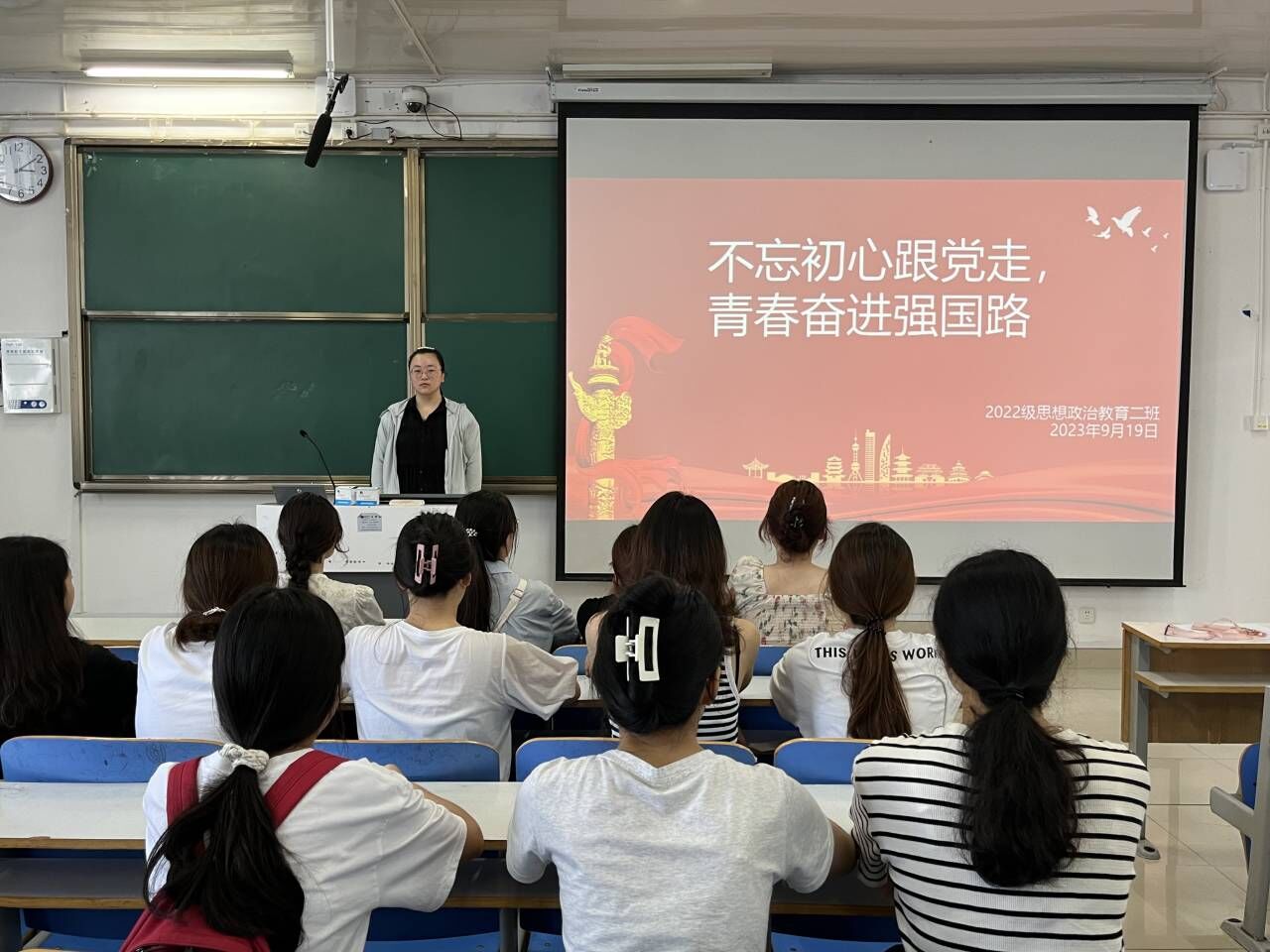 9月19日下午,ok138cn太阳集团5292022级思想政治教育二班在社科楼514教室开展“不忘初心跟党走,青春奋进强国路”主题团课。我院2022级思想政治教育二班全体成员共同参加此次团课。团课由团支书李佳音主持。