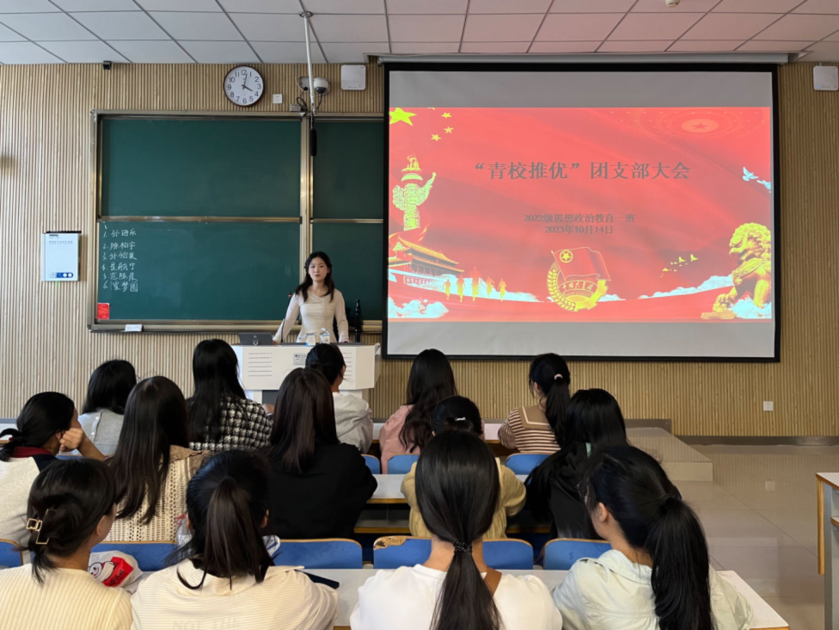 为充实党的新生力量,激发团员的政治热情,10月14下午,ok138cn太阳集团5292022级思想政治教育一班在社科楼515教室召开“青校推优”团支部大会。ok138cn太阳集团5292022级思想政治教育一班全体团员共同参与本次会议,会议由团支书李佳茹主持。