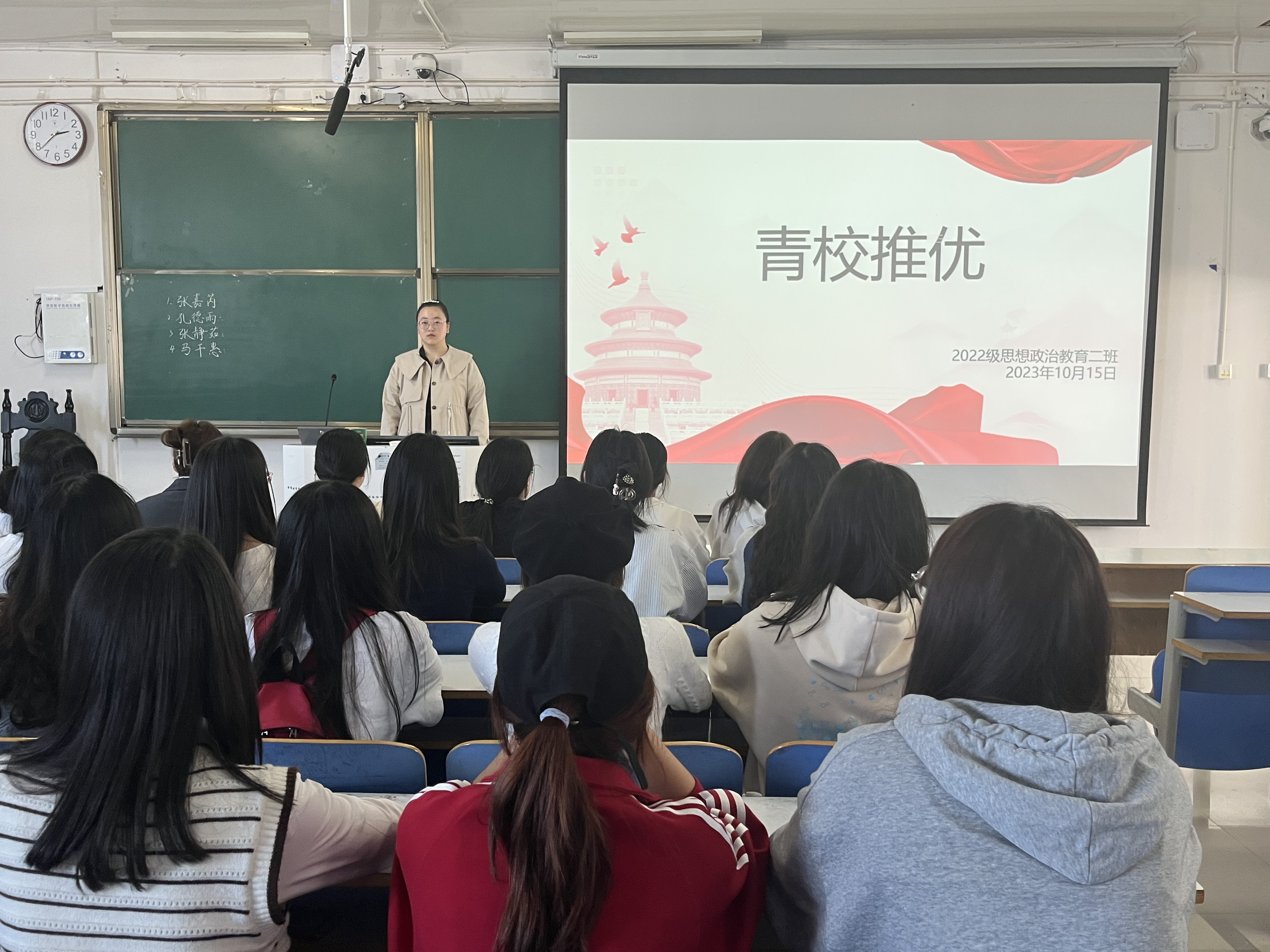 10月15日下午,ok138cn太阳集团5292022级思想政治教育二班在社科楼514教室召开“青年共产主义学校”推优大会。我院2022级思想政治教育二班全体成员共同参与此次推优大会。大会由团支书李佳音主持。