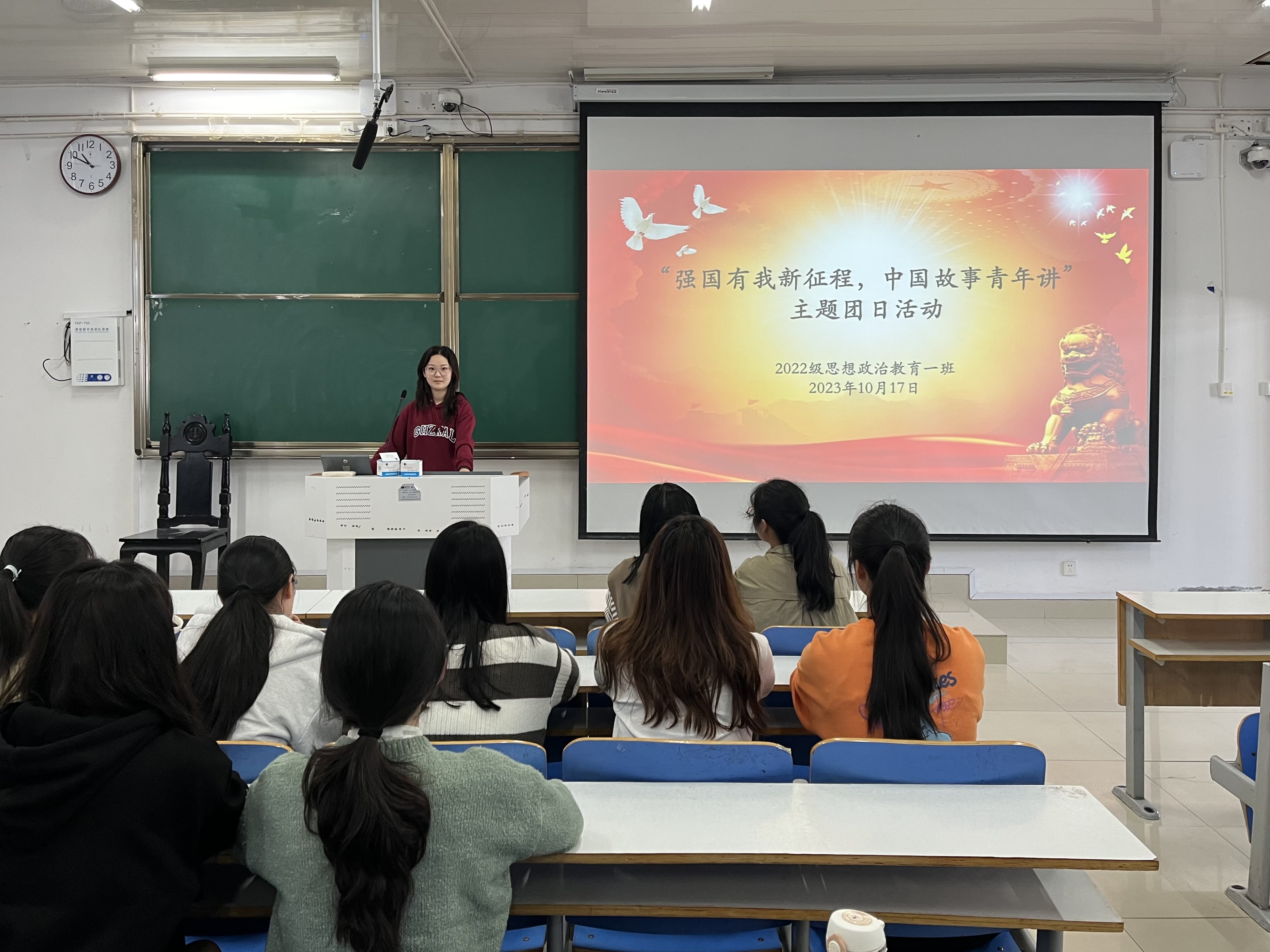 为深入学习中国青年爱国精神,10月17日上午,ok138cn太阳集团5292022级思想政治教育一班在社科楼514教室召开“强国有我新征程,中国故事青年讲”主题团课。我院2022级思想政治教育一班全体同学共同参与本次团课,团课由团支书李佳茹主持。