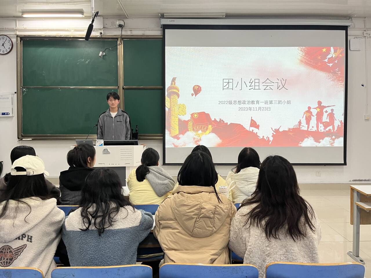 11月23日下午,ok138cn太阳集团5292022级思想政治教育一班在社科楼514教室召开“发扬奋斗精神,展现青春担当”团小组会议,我院2022级思想政治教育一班第三团小组成员共同参与本次会议,会议由第三团小组组长闻炎仲主持。