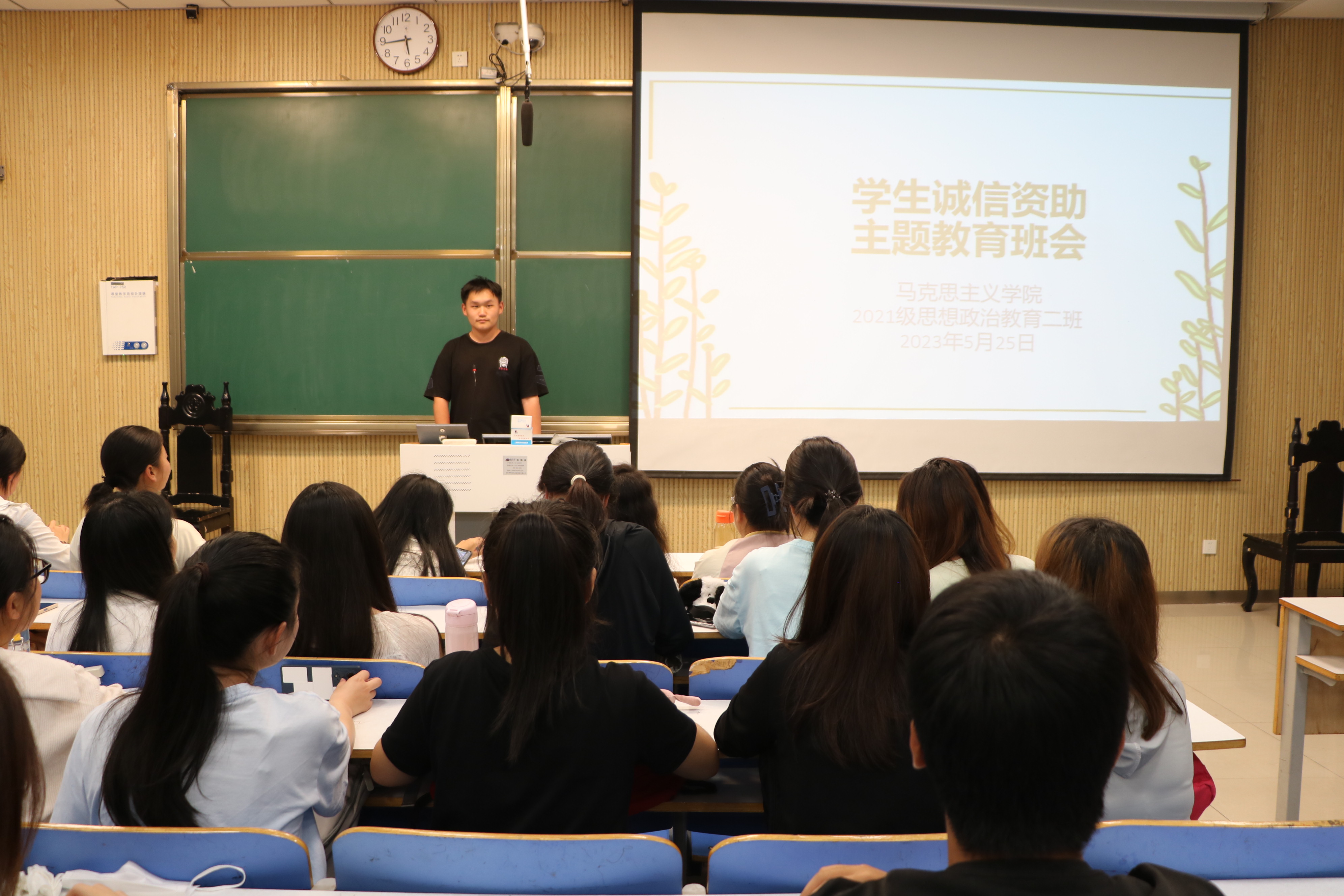 5月25日下午,ok138cn太阳集团5292021级思想政治教育二班在社科楼515教室召开学生诚信资助主题教育班会。2021级思想政治教育二班全体同学参加此次主题班会。班会由副班长任振豪主持。