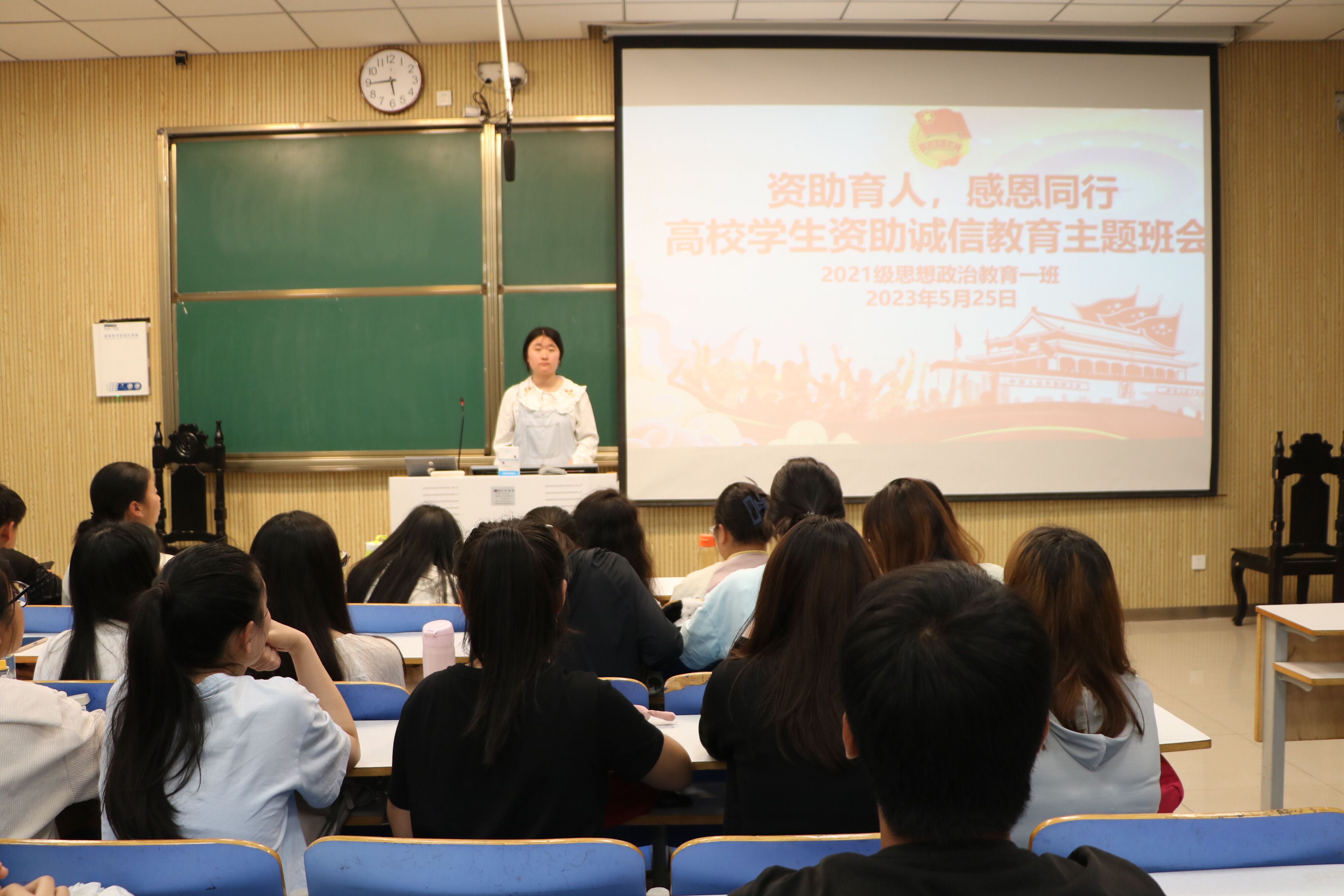 5月25日下午,ok138cn太阳集团5292021级思想政治教育一班在社科楼514教室召开“资助育人,感恩同行”高校学生资助诚信教育主题班会。2021级思想政治教育一班全体成员共同参加了本次班会,班会由副班长雷敏主持。