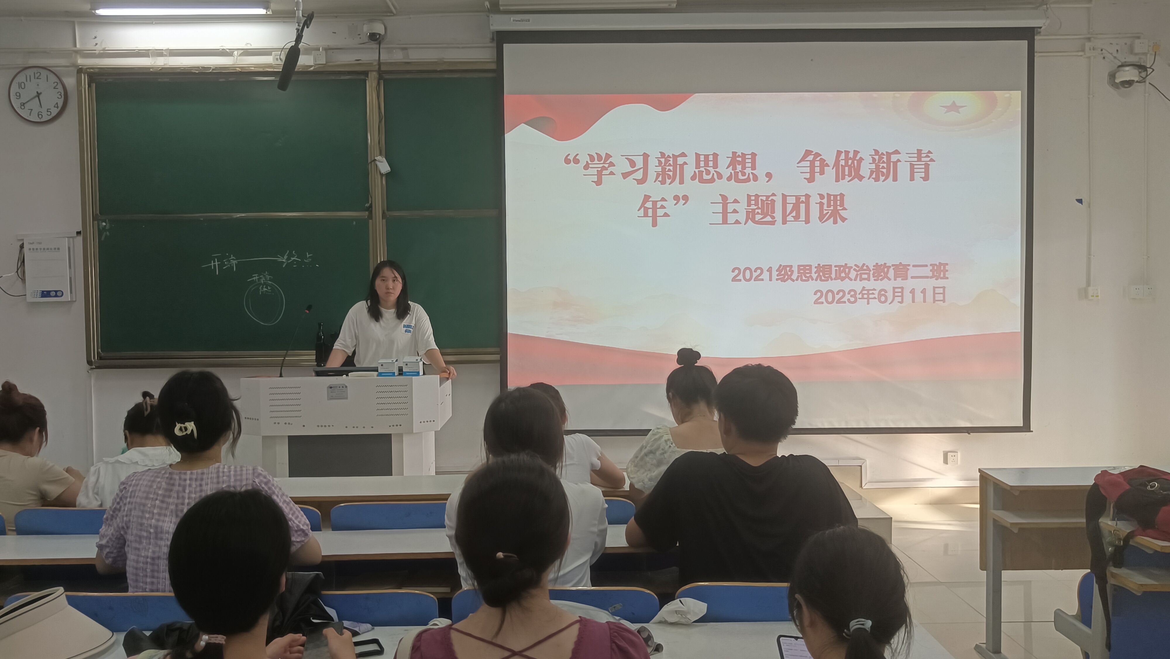 6月11日上午,ok138cn太阳集团5292021级思想政治教育二班在社科楼514教室召开“学习新思想,争做新青年”主题团课。2021级思想政治教育二班全体团员参加此次团课。团课由团支书王婧欣主持。