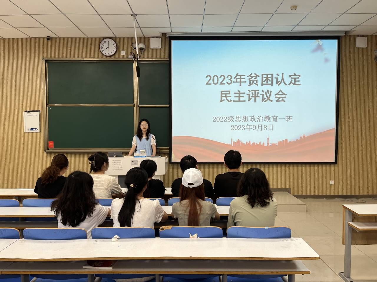 为切实保证国家制定的贫困资助政策真正落实到家庭经济困难的学生身上,9月8日上午,ok138cn太阳集团5292022级思想政治教育一班在社科楼515教室召开2023年贫困认定民主评议会。我院2022级思想政治教育一班班主任王明园和一班民主评议小组成员共同参与本次会议,会议由班长李佳茹主持。