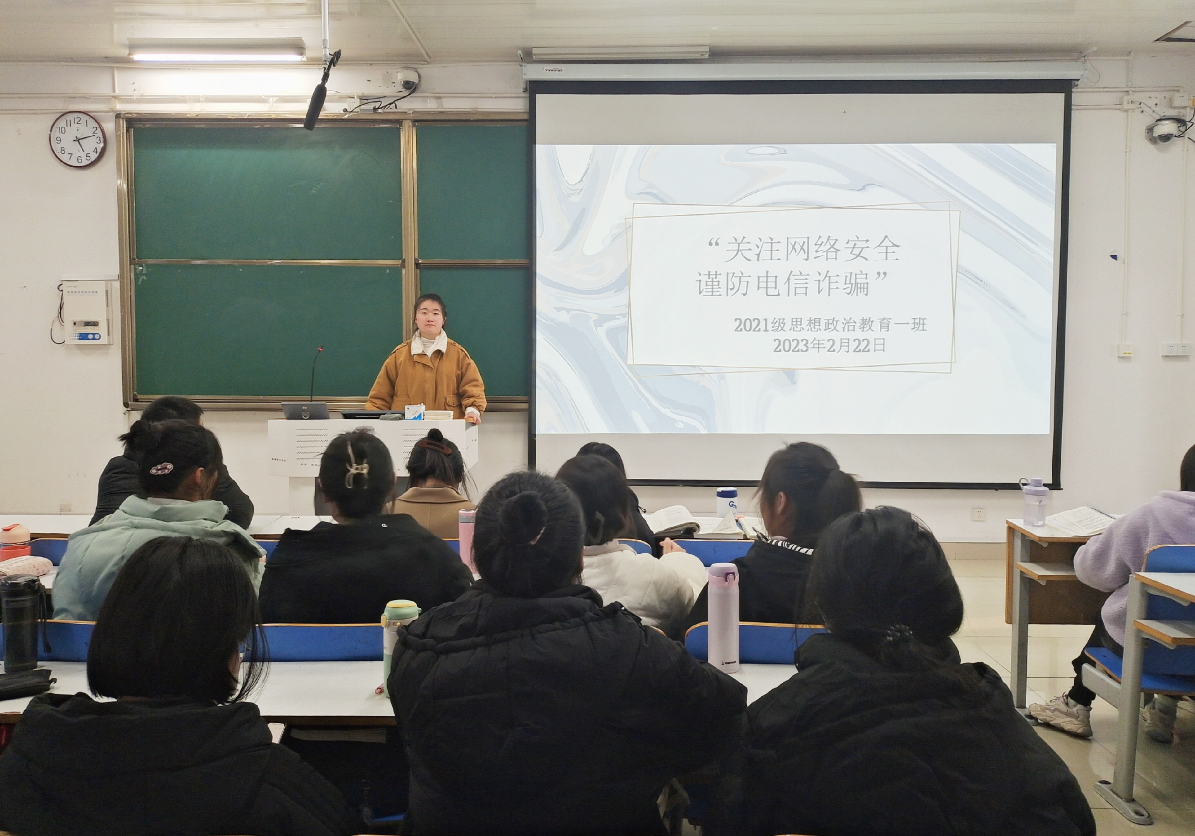 为进一步提高同学们对电信网络诈骗的防范意识,增强防范网络诈骗能力。2月22日下午,ok138cn太阳集团5292021级思想政治教育一班在社科楼514教室召开“关注网络安全,谨防电信诈骗”主题班会。2021级思想政治教育一班全体成员共同参加本次班会。班会由副班长雷敏主持。