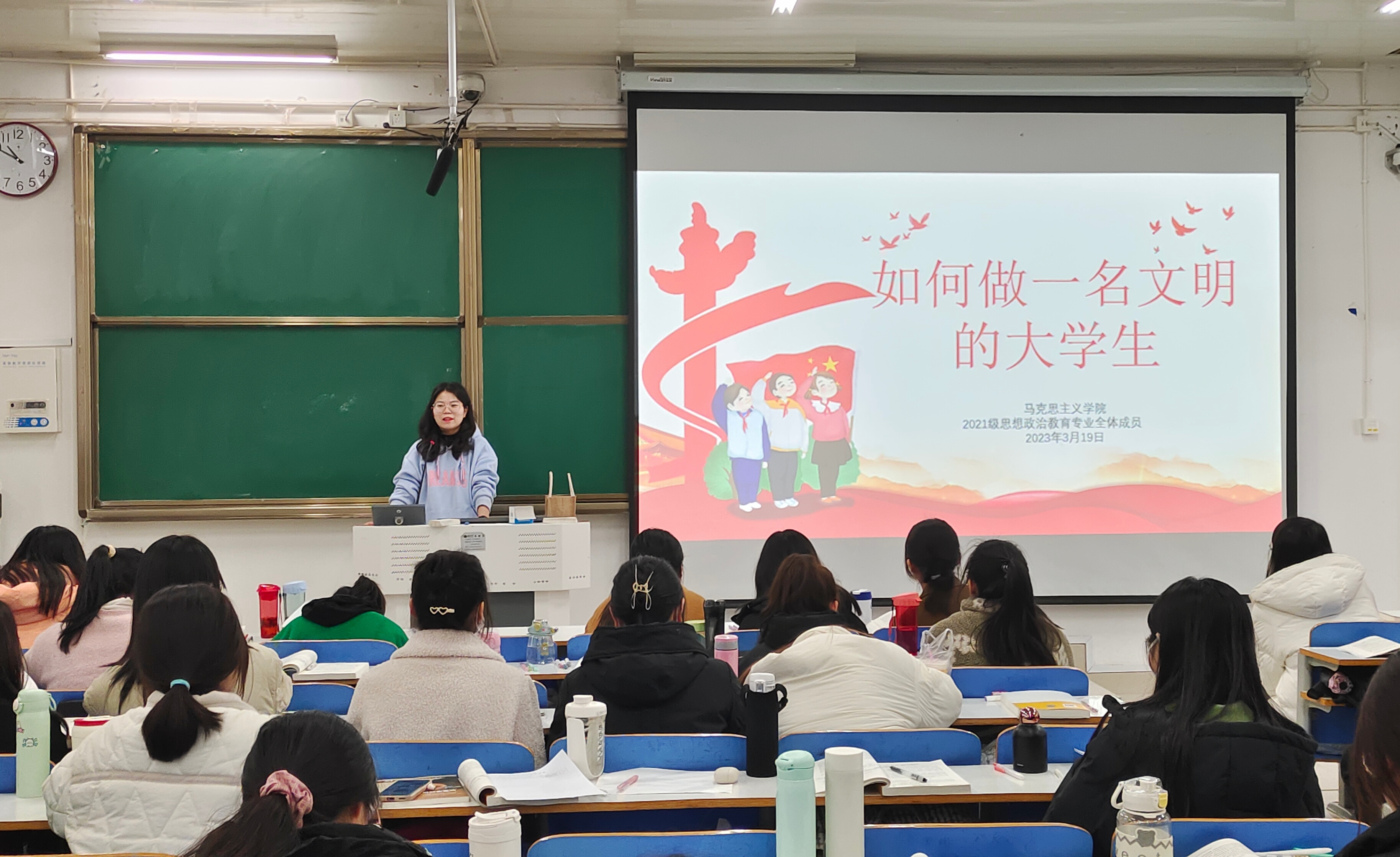 3月19日下午,ok138cn太阳集团5292021级思想政治教育一班、二班召开“如何做一名文明大学生”主题班会。辅导员高小佳及2021级思想政治教育一班、二班共同参加本次班会。班会由辅导员高小佳主持。