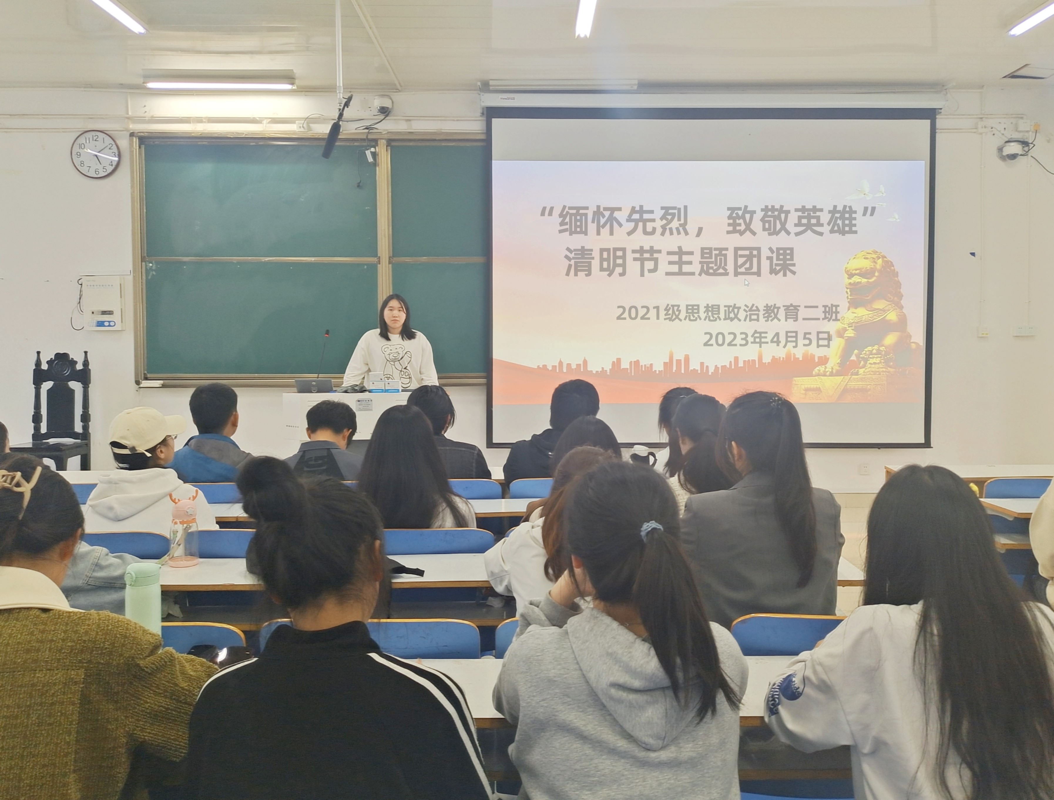 4月5日下午,ok138cn太阳集团5292021级思想政治教育二班在社科楼514教室召开“缅怀先烈,致敬英雄”清明节主题团课。2021级思想政治教育二班全体团员参加此次主题团课。团课由团支书王婧欣主持。