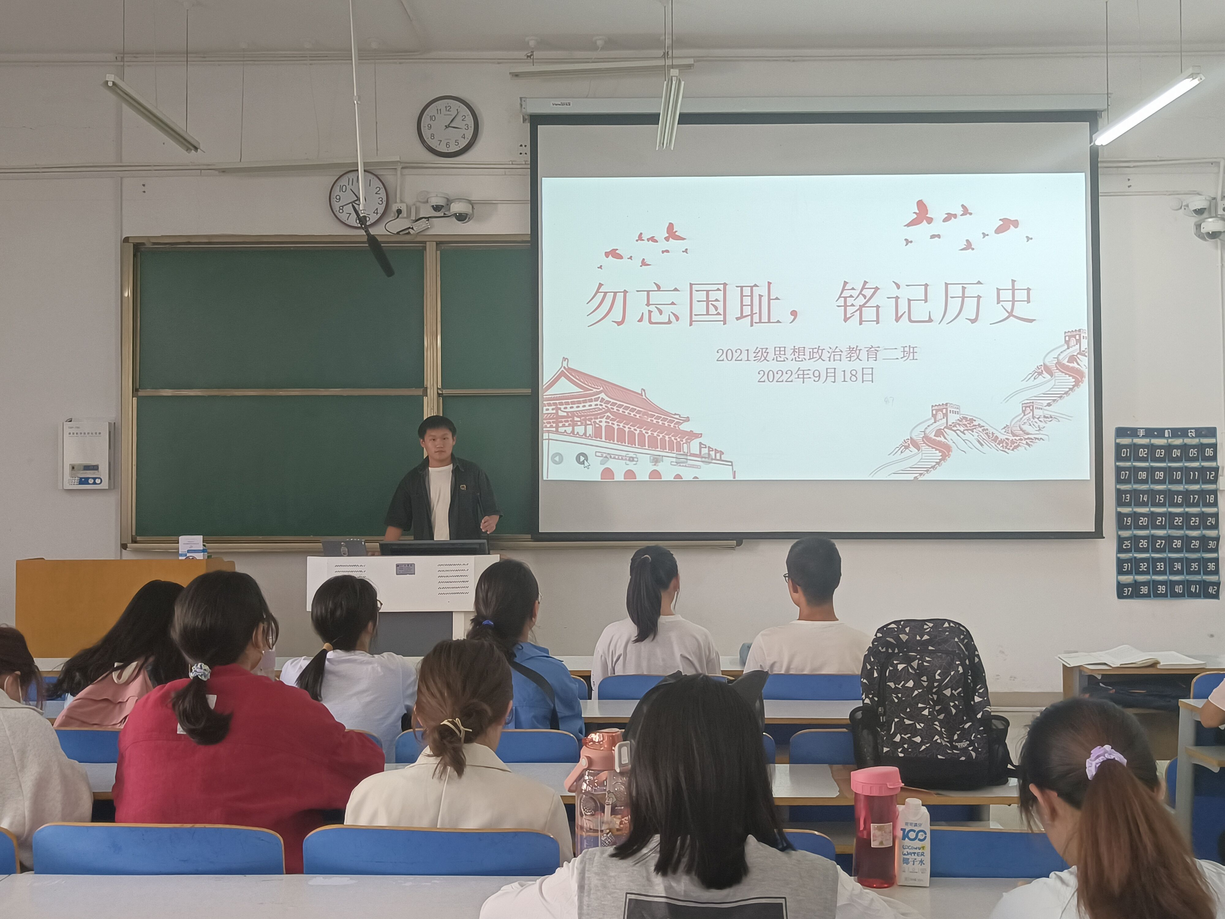 9月18日上午,ok138cn太阳集团5292021级思想政治教育二班在社科楼514教室召开“勿忘国耻,铭记历史”主题班会。2021级思想政治教育二班全体成员参加此次班会。班会由副班长任振豪主持。