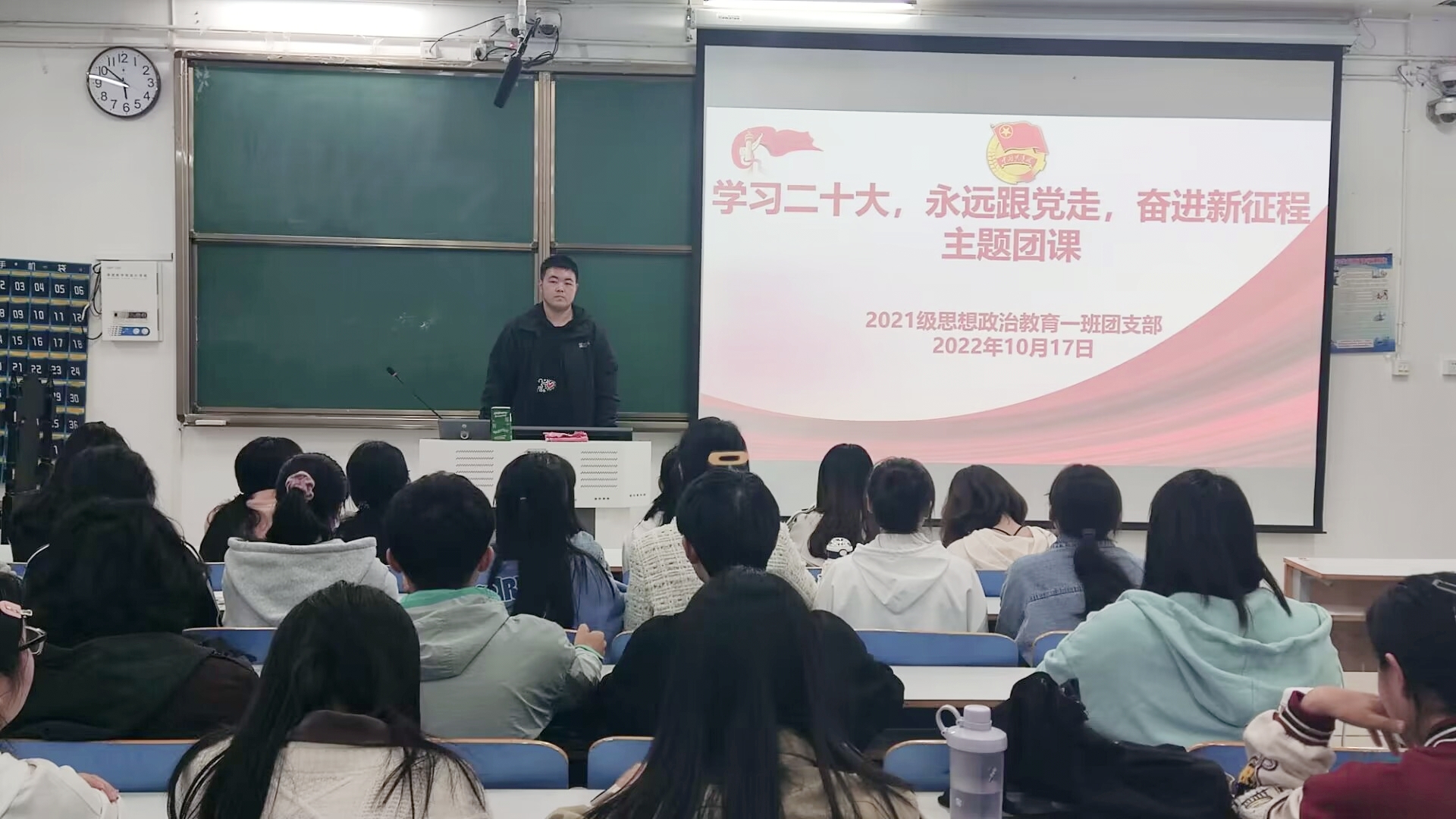 10月17日下午,ok138cn太阳集团5292021级思想政治教育一班在社科楼514教室召开“学习二十大,永远跟党走,奋进新征程”主题团课。2021级思想政治教育一班全体团员共同参与本次团课。团课由团支书戴翰林主持。