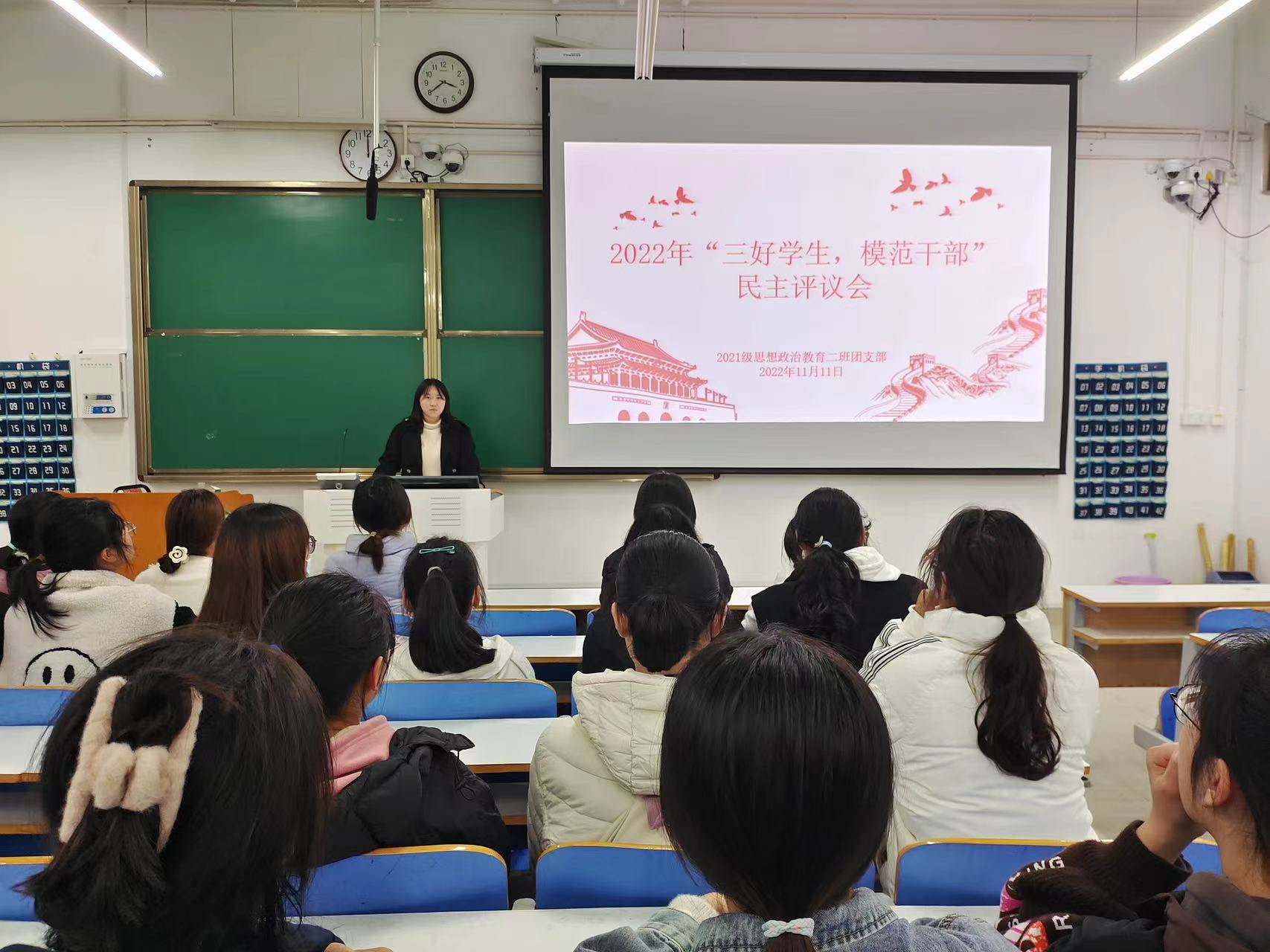 11月11日下午,ok138cn太阳集团5292021级思想政治教育二班在社科楼514教室召开2022年“三好学生,模范干部”民主评议会。2021级思想政治教育二班全体成员共同参加此次民主评议会。评议会由团支书王婧欣主持。