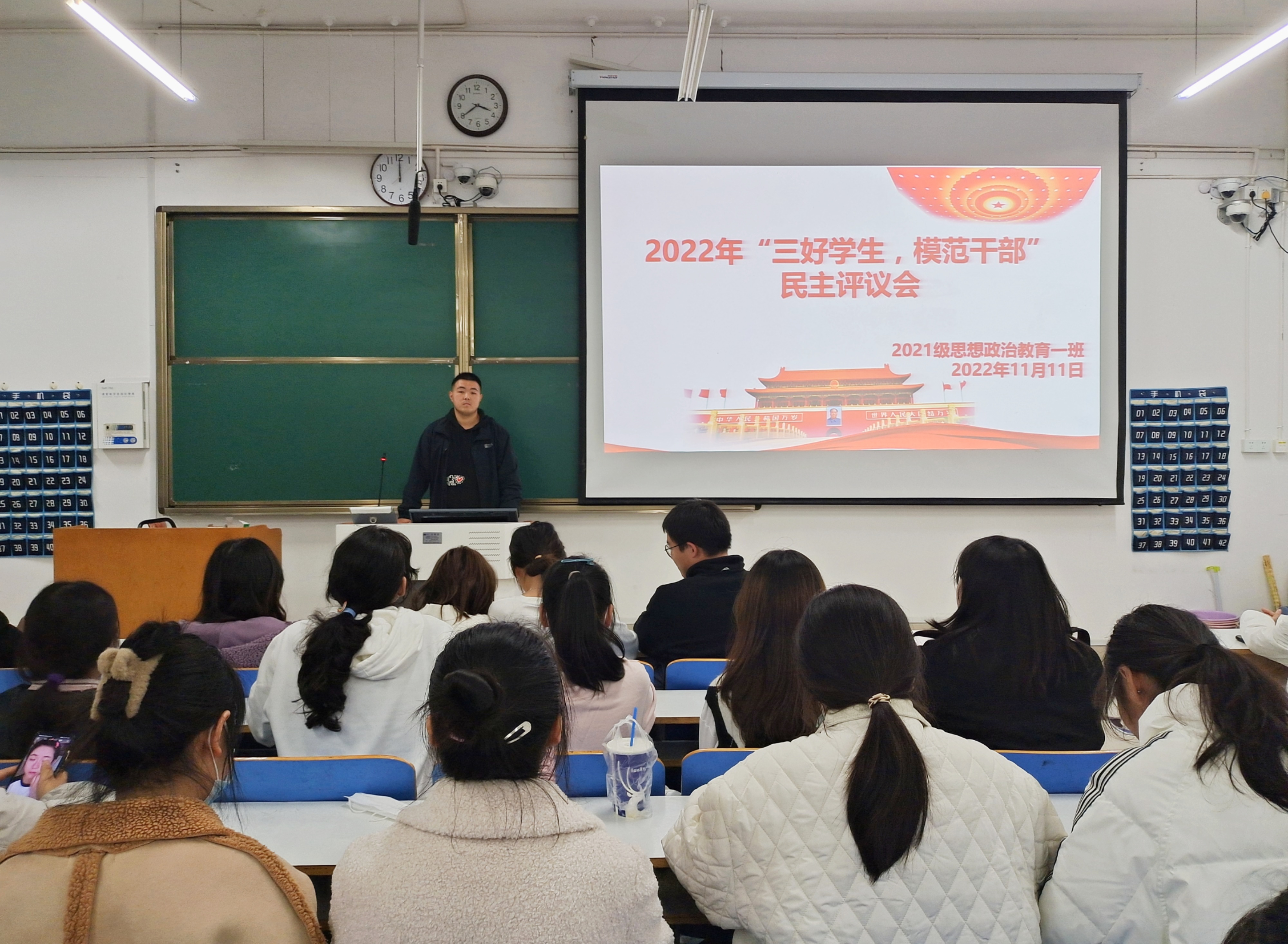 11月11日下午,ok138cn太阳集团5292021级思想政治教育一班在社科楼517教室召开“三好学生,模范干部”民主评议会。2021级思想政治教育一班全体成员共同参与本次会议。会议由团支书戴翰林主持。