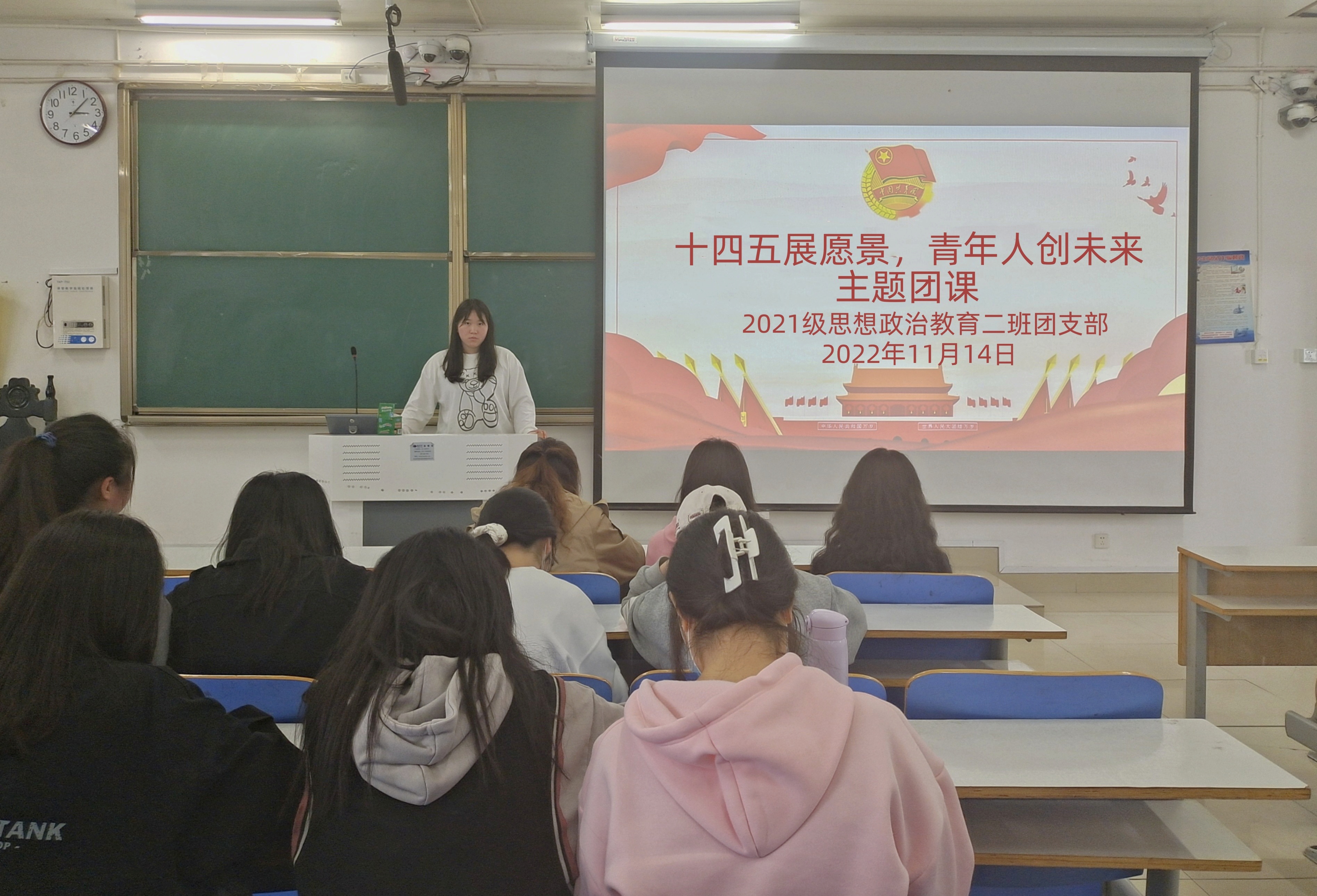 11月14日下午,ok138cn太阳集团5292021级思想政治教育二班在社科楼514教室召开“十四五展愿景,青年人创未来”主题团课。2021级思想政治教育二班全体成员共同参加本次主题团课。团课由团支书王婧欣主持。
