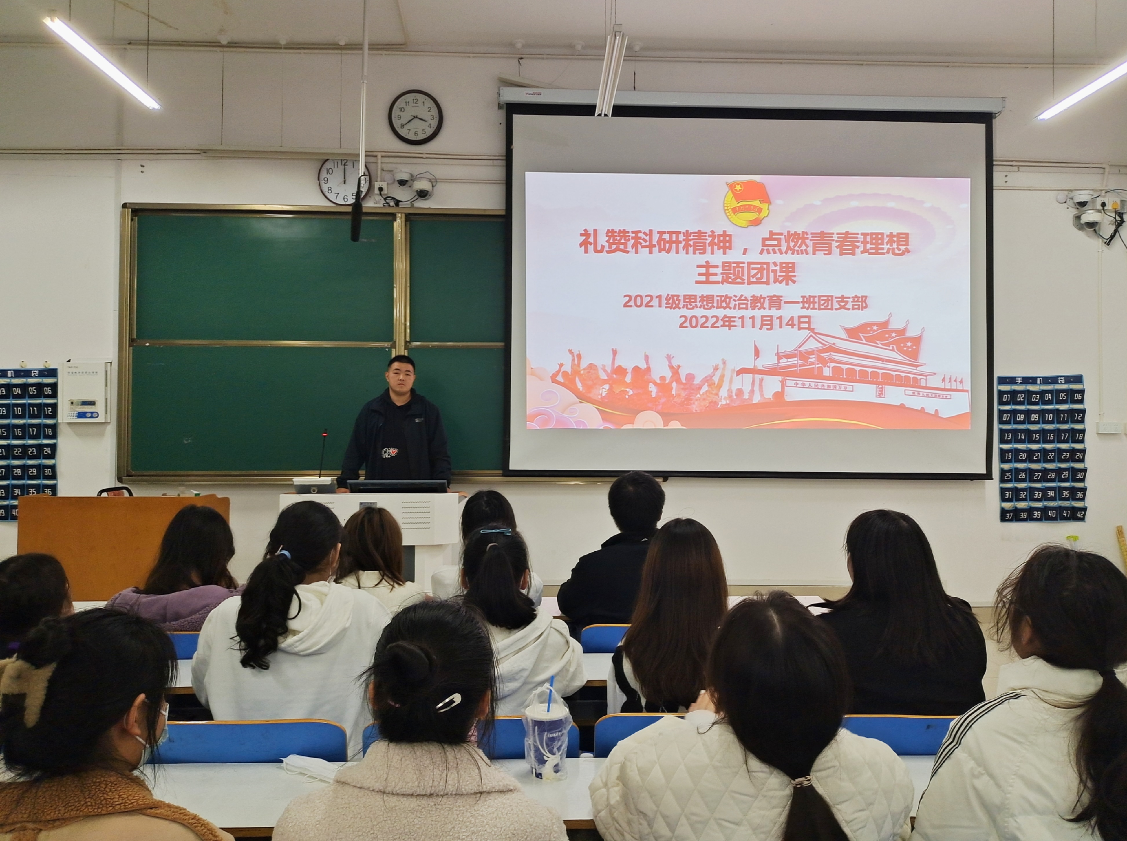 11月14日下午,ok138cn太阳集团5292021级思想政治教育一班在社科楼416教室召开“礼赞科研精神,点燃青春理想”主题团课。2021级思想政治教育一班全体团员共同参与本次团课。团课由团支书戴翰林主持。