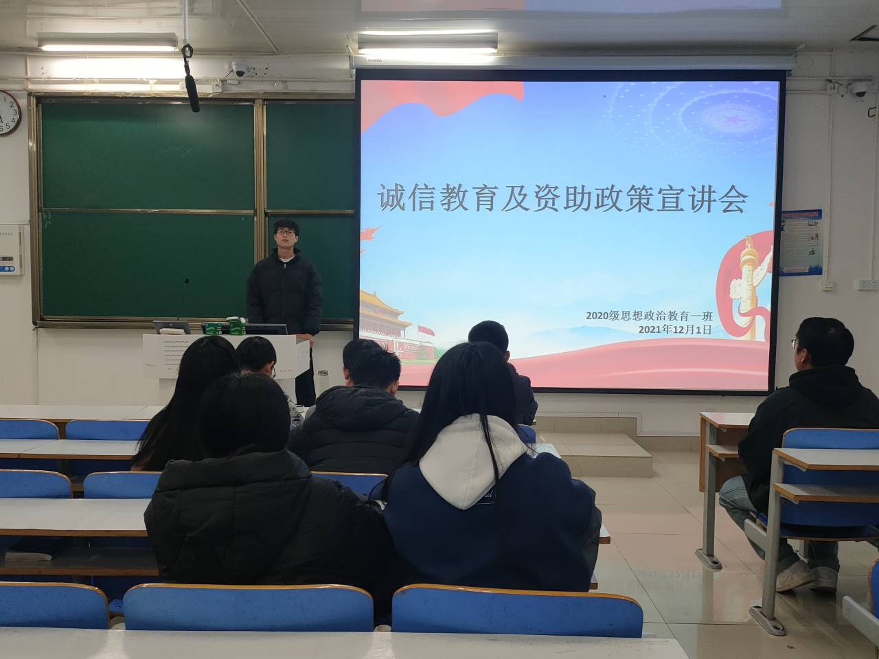 12月1日,ok138cn太阳集团5292020级思想政治教育一班在社科楼514教室顺利召开“诚信教育及资助政策”宣讲会。2020级思想政治教育一班全体同学参加本次会议,宣讲会由副班长白帅豪主持。