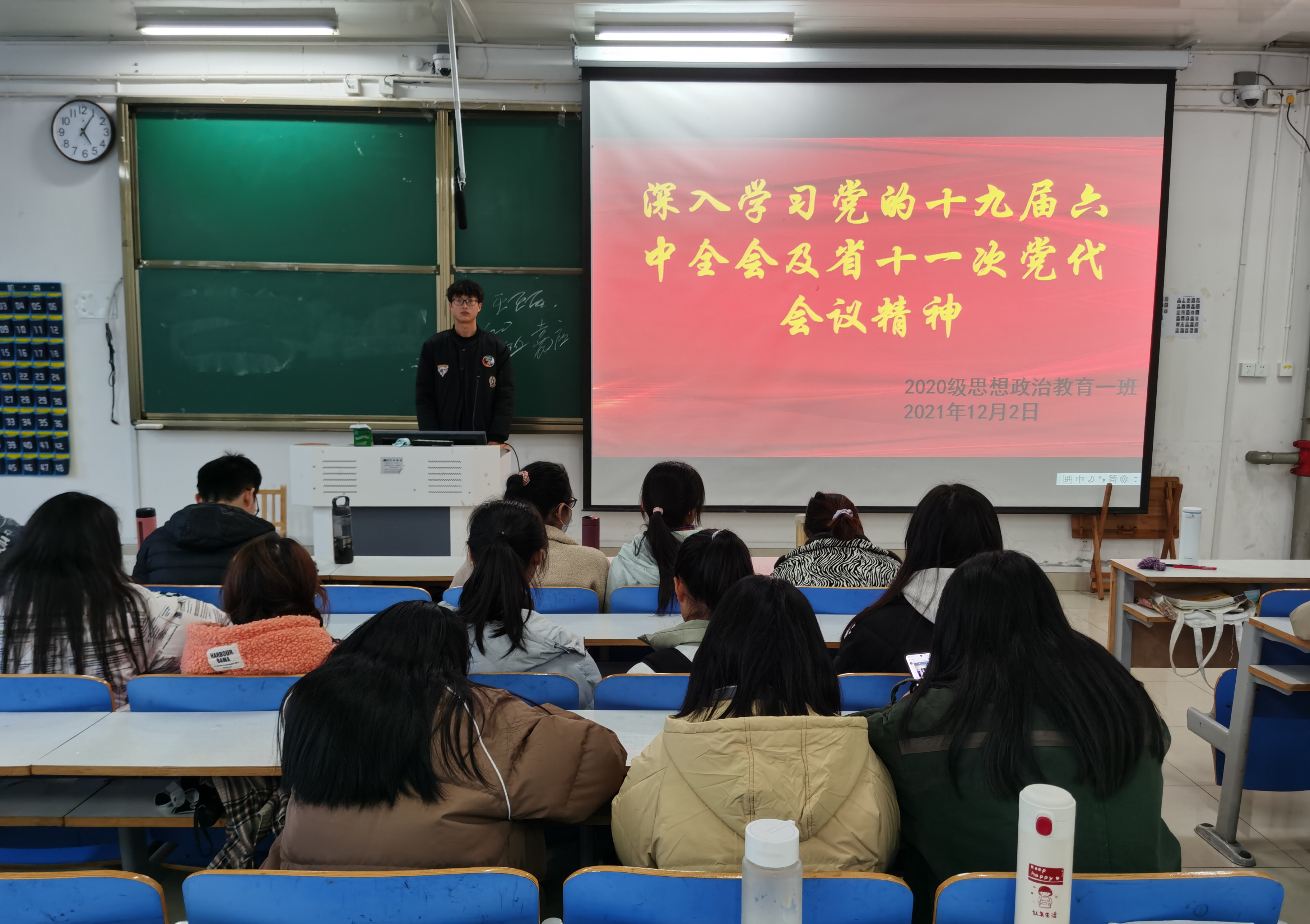 12月2日下午,ok138cn太阳集团5292020级思想政治教育一班在社科楼514教室开展“深入学习党的十九届六中全会及省十一次党代表会精神”主题团课。2020级思想政治教育一班全体同学参加了本次团课,团课由团支部副书记白帅豪主持。