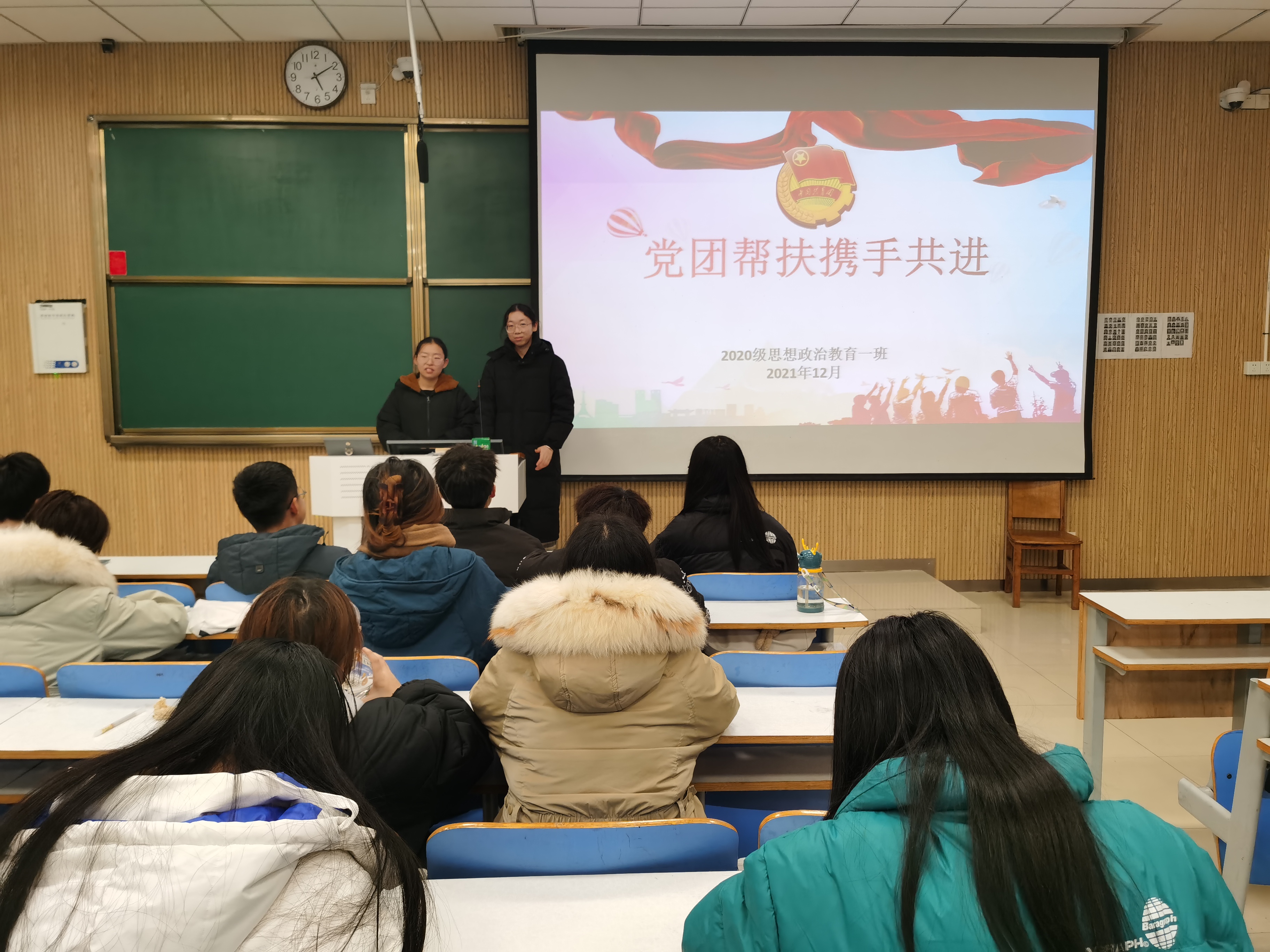 12月8日下午,ok138cn太阳集团5292020级思想政治教育一班在社科楼515教室顺利开展党团帮扶活动。我院正式党员王涵、预备党员卞晓莹与2020级思想政治教育一班全体同学参加了本次活动。