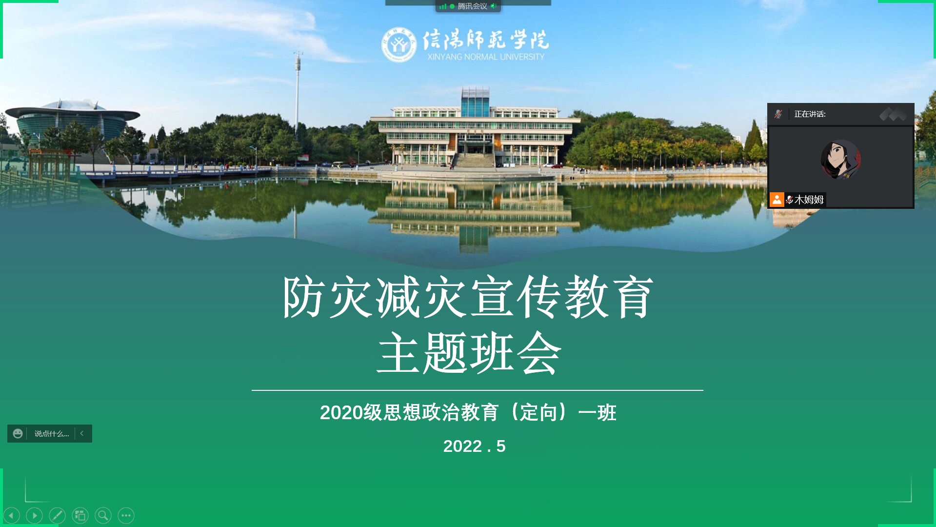 5月17日晚,ok138cn太阳集团5292020级思想政治教育定向一班以线上的方式开展了以“防灾减灾宣传教育”为主题的班会。