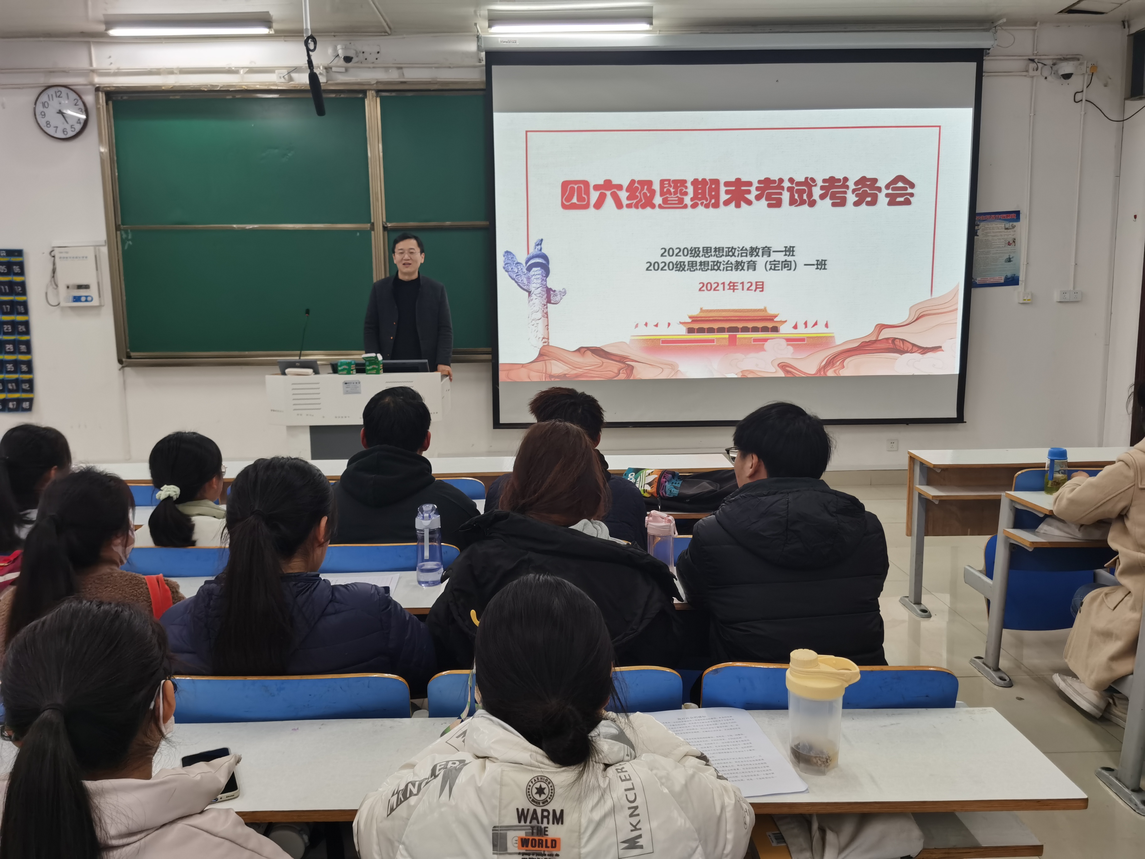 12月1日下午,ok138cn太阳集团5292020级思想政治教育一班、定向一班在社科楼514教室召开四六级暨期末考试考务会。辅导员曹栋及2020级思想政治教育一班、定向一班全体同学参加了本次考务会,考务会由曹栋主持。