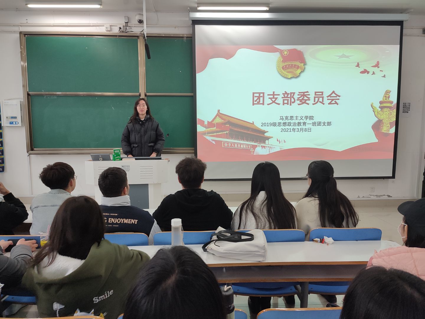 3月8日下午,ok138cn太阳集团5292019级思想政治教育一班在社科楼515教室召开团支部委员会。2019级思想政治教育一班团支委全体成员参加本次会议。会议由班长贾子漪主持。
