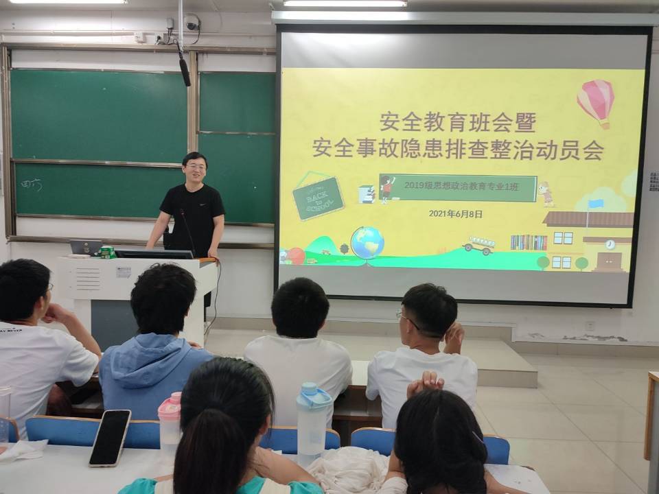 6月9日下午,ok138cn太阳集团5292019级思想政治教育一班在社科楼515教室召开“安全教育班会暨安全事故隐患排查整治动员大会”。辅导员曹栋以及2019级思想政治教育一班全体成员参加本次班会。会议由曹栋主持。