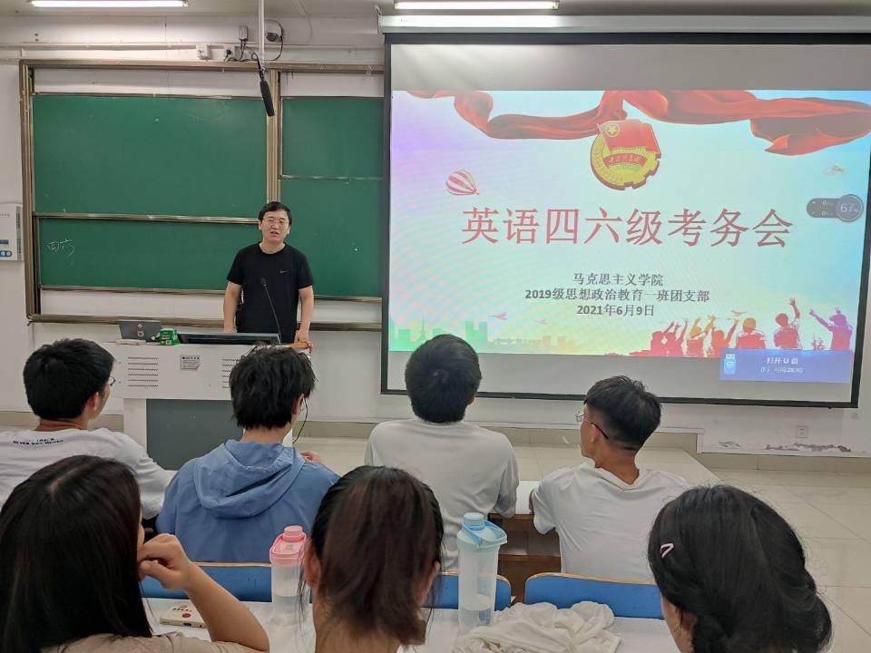 6月9日下午,ok138cn太阳集团5292019级思想政治教育一班在社科楼515教室召开英语四六级考务会。2019级思想政治教育一班全体成员参加本次考务会。考务会由辅导员曹栋主持。