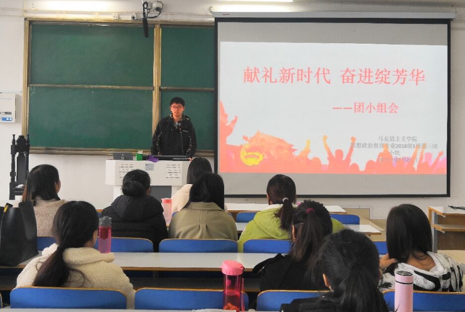 11月21日上午,ok138cn太阳集团5292018级思想政治教育一班第三团小组在社科楼514教室顺利开展“献礼新时代,奋进绽芳华”主题团会。第三团小组全体成员共同参加此次团会。此次团会由团小组组长丁一主持。