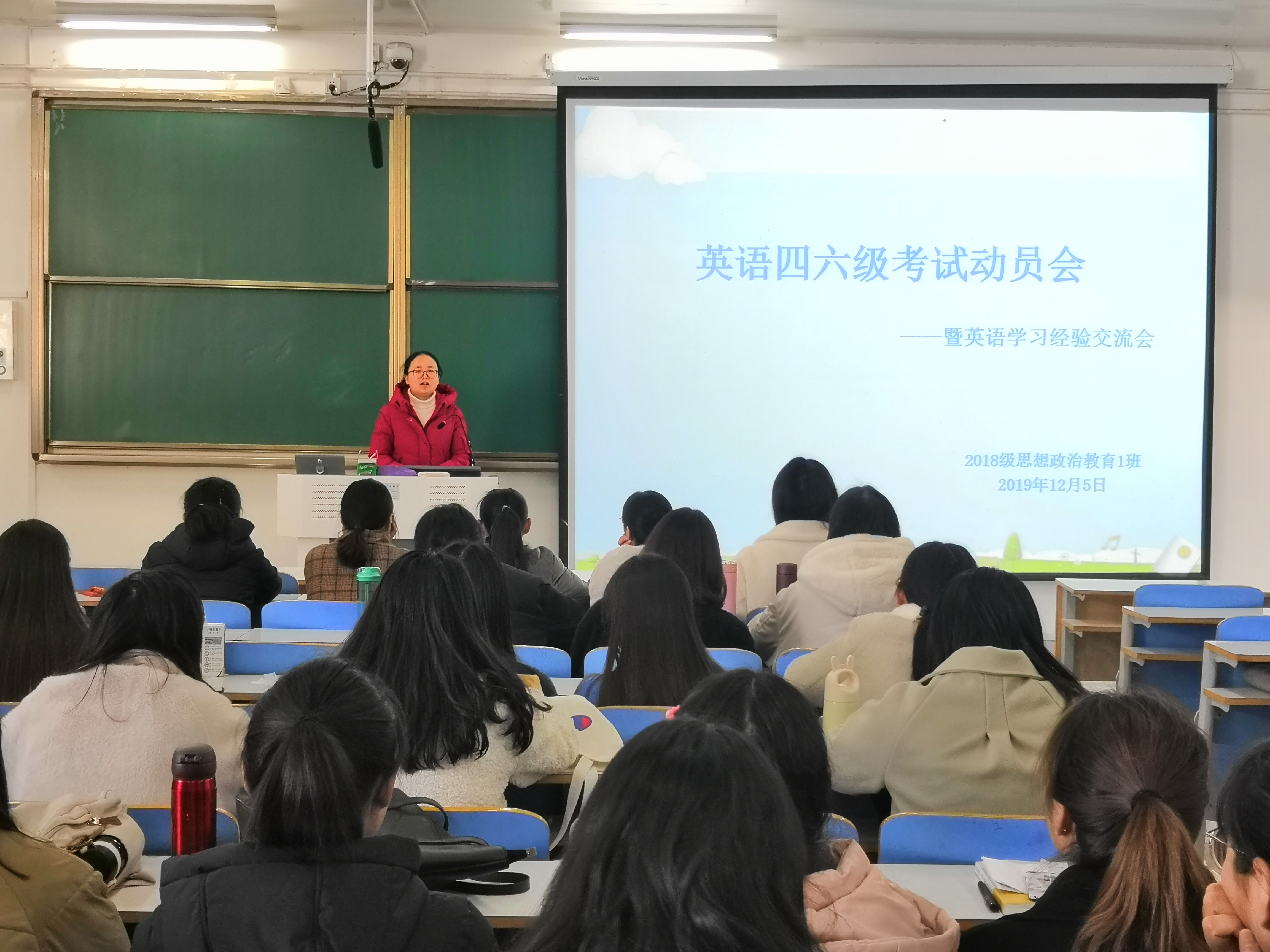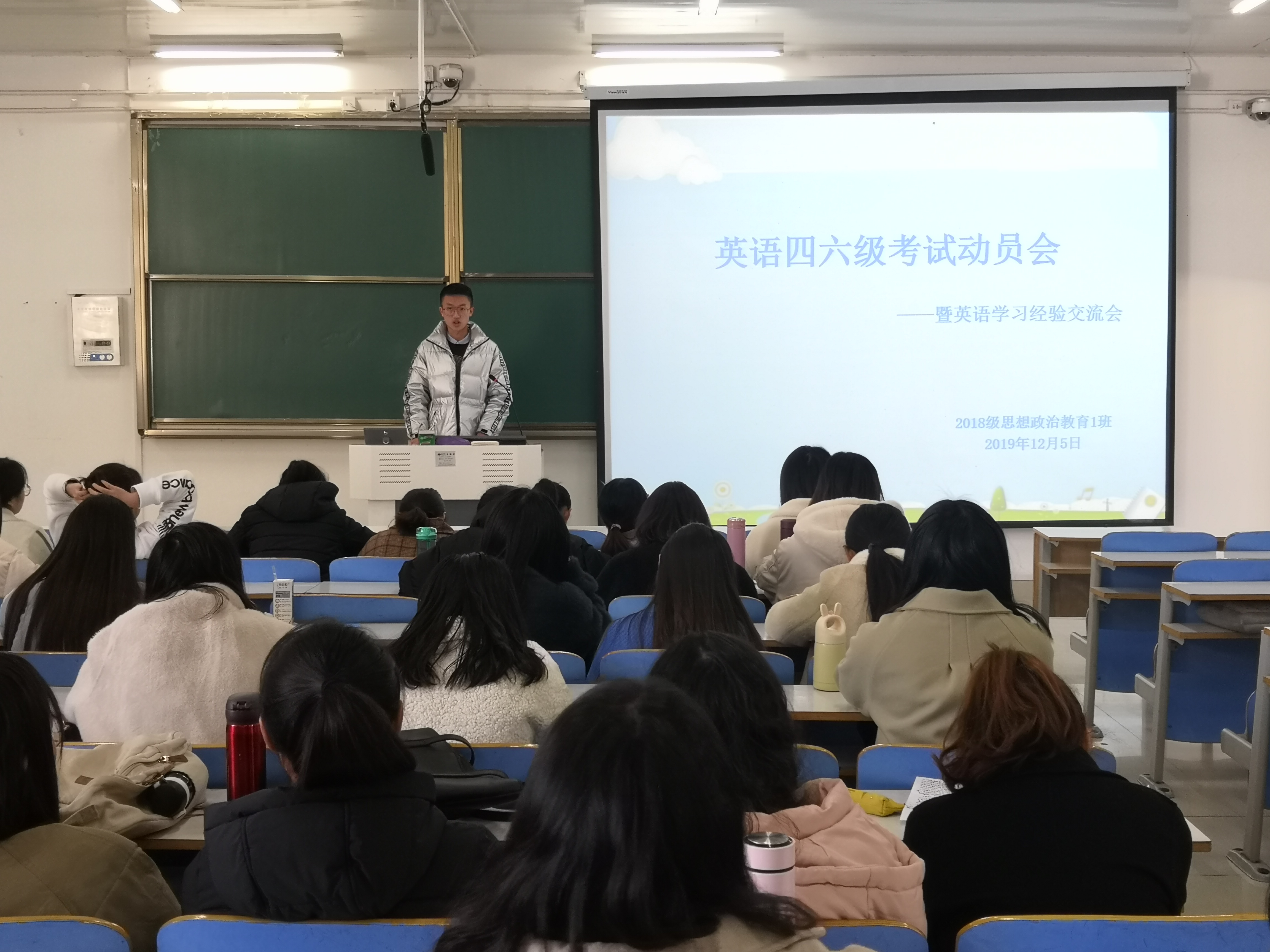 12月5日上午,ok138cn太阳集团5292018级思想政治教育一班在社科楼514教室顺利开展英语四六级考试动员会。2018级思政一班全体同学共同参加此次会议。此次会议由班长邢子豪主持。
