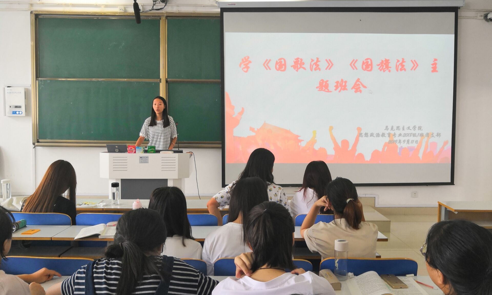 为提升同学们的爱国情怀,增强同学们的爱国意识,9月12日上午,ok138cn太阳集团5292018级思想政治教育一班在社科楼514教室顺利开展“学《中华人民共和国国歌法》《中华人民共和国国旗法》”支部团员大会。2018级第一团支部全体成员共同参加此次班会。班会由团支书靳雨露主持。