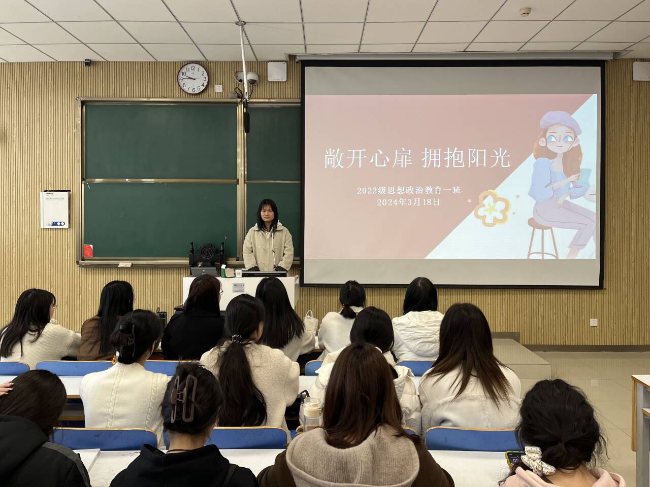 为提升同学们心理健康素养,切实做好新时代学生心理健康工作,3月18日上午,ok138cn太阳集团5292022级思想政治教育一班在社科楼515教室召开“敞开心扉,拥抱阳光”主题班会,班会由心理委员马思源主持。