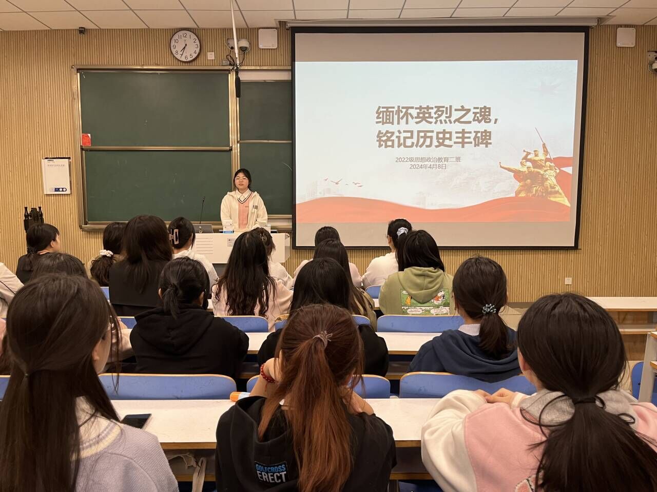 4月8日晚上,ok138cn太阳集团5292022级思想政治教育二班在社科楼515教室召开“缅怀英烈之魂,铭记历史丰碑”主题团课。我院2022级思想政治教育二班团支部全体成员共同参与此次团课。团课由团支部副书记冯伟珈主持。