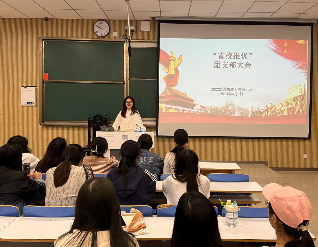 4月2日上午,ok138cn太阳集团5292022级思想政治教育一班在社科楼515教室召开“青校推优”团支部大会,我院2022级思想政治教育一班全体同学共同参与本次会议,会议由团支书李佳茹主持。