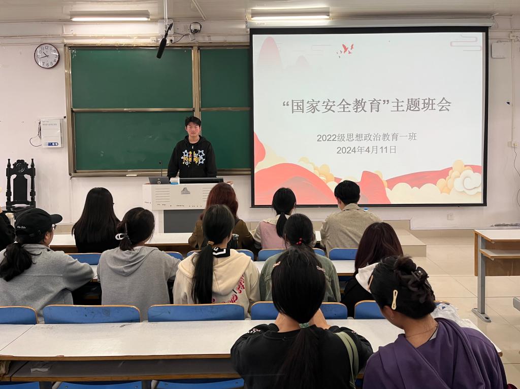 为进一步增强同学们的国家安全意识,4月11日上午,ok138cn太阳集团5292022级思想政治教育一班在社科楼514教室召开“国家安全教育”主题班会,我院2022级思想政治教育一班全体同学共同参与本次班会,班会由副班长闻炎仲主持。