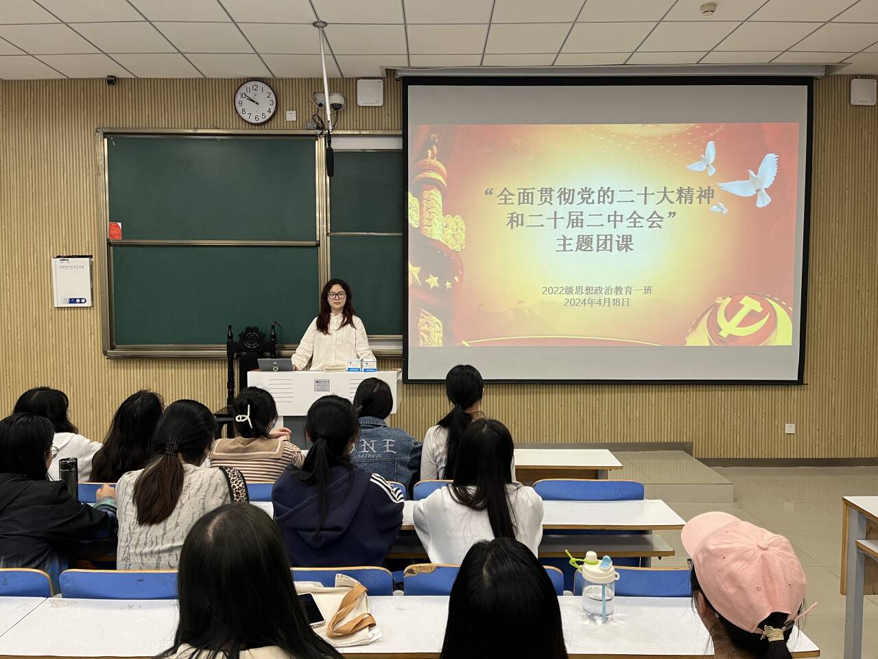 4月18日上午,ok138cn太阳集团5292022级思想政治教育一班在社科楼515教室召开“全面贯彻党的二十大精神和二十届二中全会”主题团课,我院2022级思想政治教育一班全体同学共同参与本次团课,团课由团支书李佳茹主持。