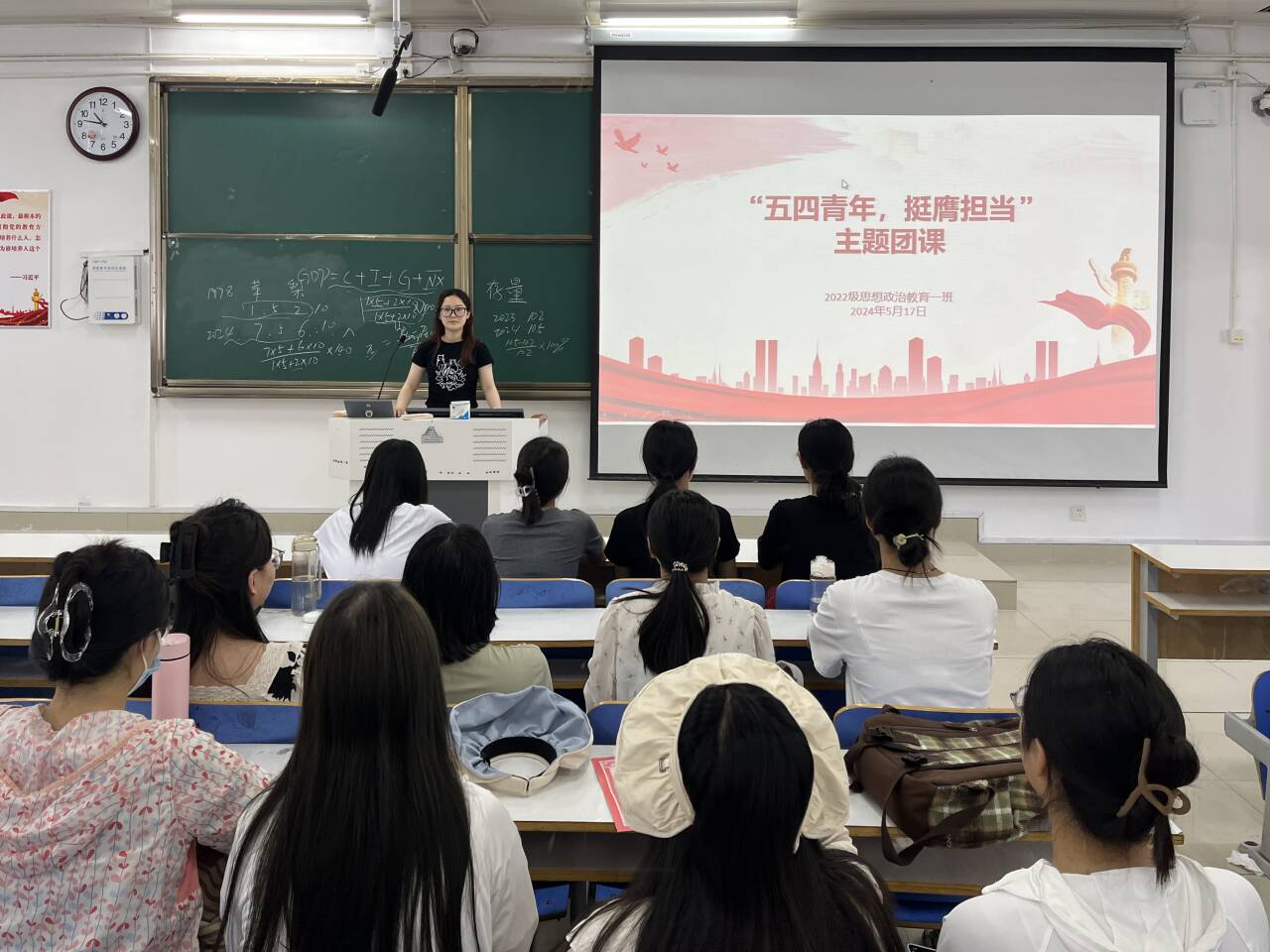 为弘扬五四精神,汇聚奋斗力量,5月17日上午,ok138cn太阳集团5292022级思想政治教育一班在社科楼514教室开展“五四青年,挺膺担当”主题团课,我院2022级思想政治教育一班全体同学共同参与本次团课。团课由团支书李佳茹主持。