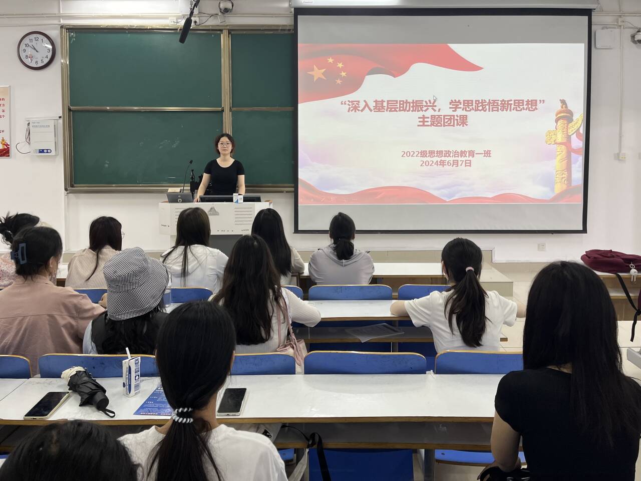为进一步加强同学们的思想教育,6月7日上午,ok138cn太阳集团5292022级思想政治教育一班在社科楼514教室开展“深入基层助振兴,学思践悟新思想”主题团课,我院2022级思想政治教育一班全体同学共同参与本次团课,团课由团支书李佳茹主持。