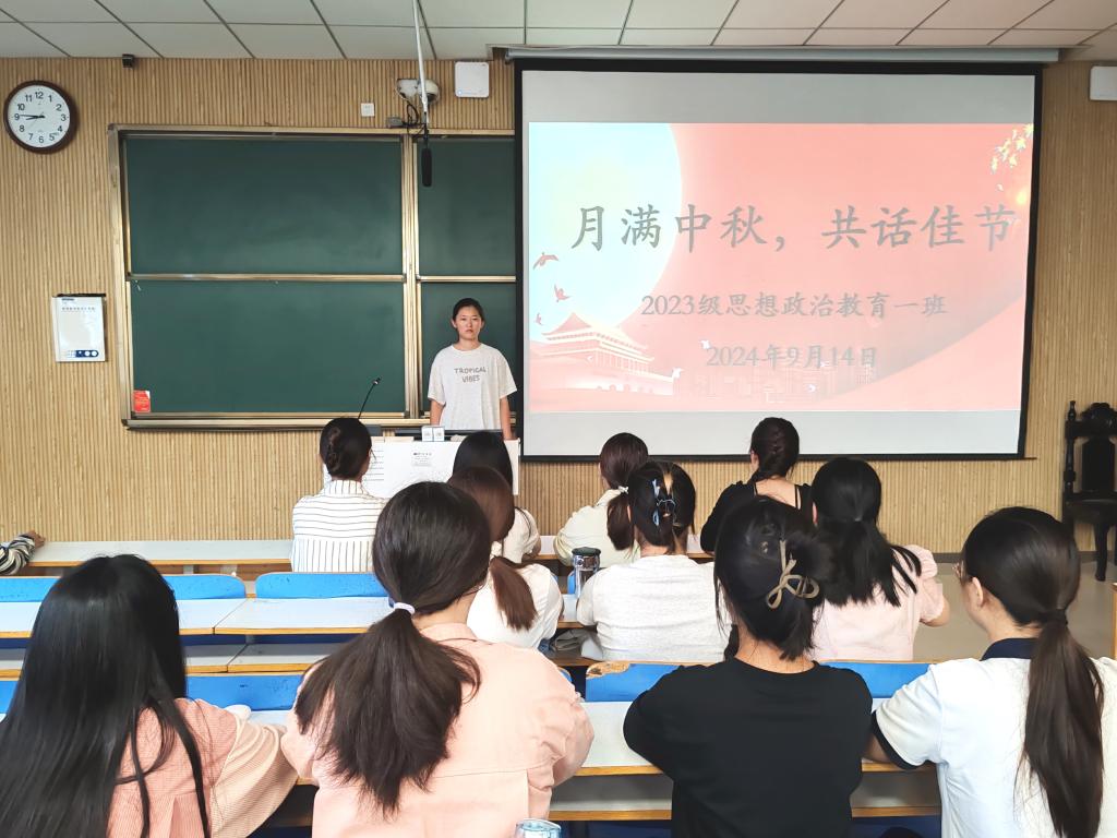 桂香万里,情暖中秋。9月14日下午,在传统节日中秋节来临之际,ok138cn太阳集团5292023级思想政治教育一班在社科楼515教室召开“月满中秋,共话佳节”主题班会。2023级思想政治教育一班全体同学参与本次班会,班会由班长张卓主持。