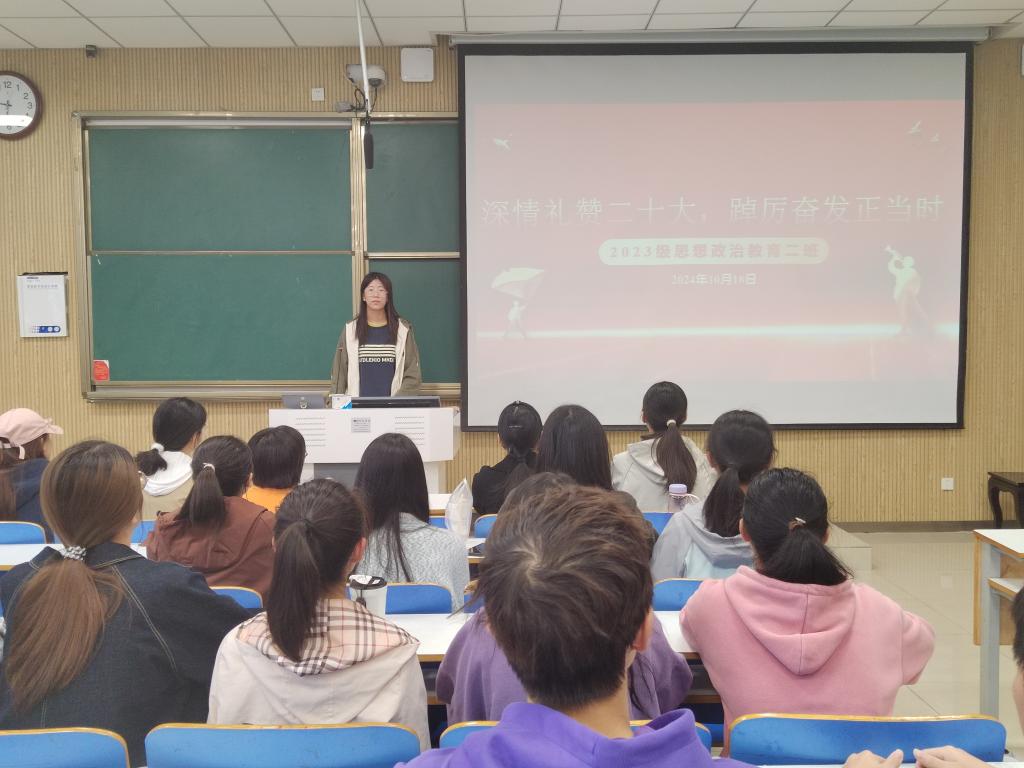 为确保思想统一和组织统一,10月18日上午,ok138cn太阳集团5292023级思想政治教育二班开展“深情献礼二十大,踔厉奋发正当时”主题团课。本次团课由团支书主持,全体二班同学参加。