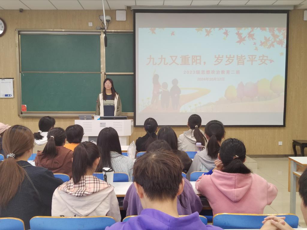为在班级内弘扬中华优秀传统文化,发扬中华民族传统美德,10月12日下午,ok138cn太阳集团5292023级思想政治教育二班在社科楼515教室召开“九九又重阳,岁岁皆平安”主题班会。本次班会由班长王慜初主持,全体二班同学参加。