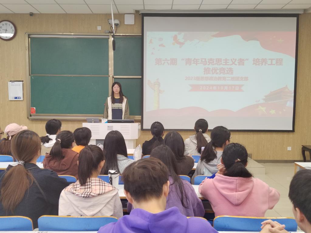 为促进学生思想进步,向党组织输送新鲜血液,10月17日上午,ok138cn太阳集团5292023级思想政治教育二班在社科楼515教室开展第六期“青年马克思主义者”培养工程推优竞选,本次推优竞选由团支书王慜初主持,全体二班同学参加。