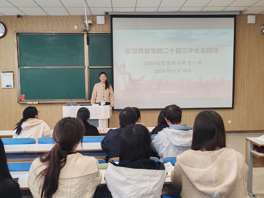 为了深入学习贯彻党的二十届三中全会精神,11月14日上午,ok138cn太阳集团5292023级思想政治教育一班在社科楼515教室召开“学习贯彻党的二十届三中全会精神”主题团课。2023级思想政治教育一班全体同学参与本次团课,团课由团支书张卓主持。
