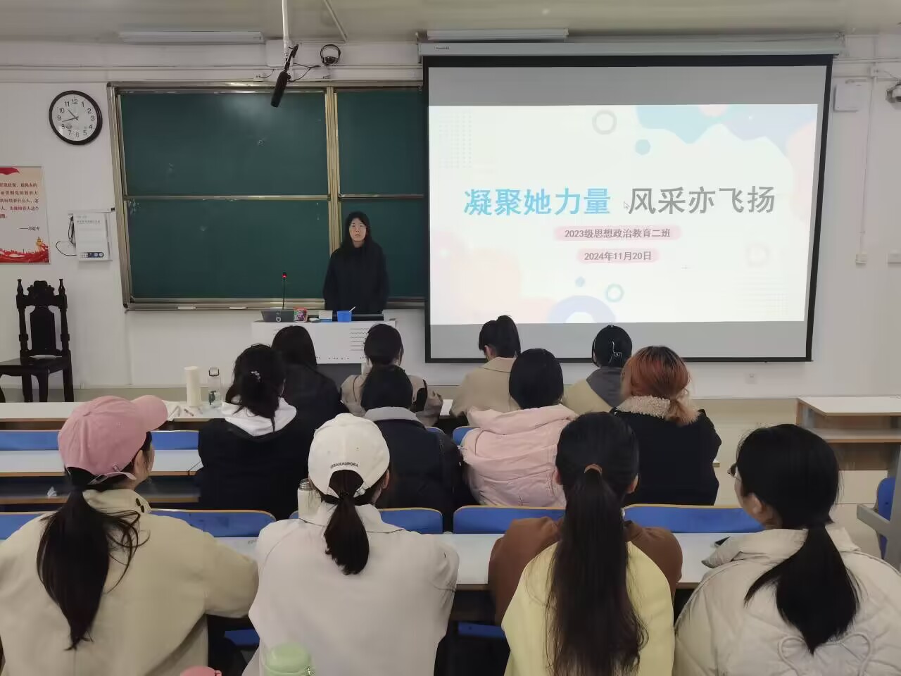 为进一步宣传女性自尊、自信、自立、自强精神,宣扬女性独立精神,11月20日下午,ok138cn太阳集团5292023级思想政治教育二班在社科楼515教室开展“凝聚她力量,风采亦飞扬”主题班会。本次主题班会由班长王慜初主持,全体二班同学参加。