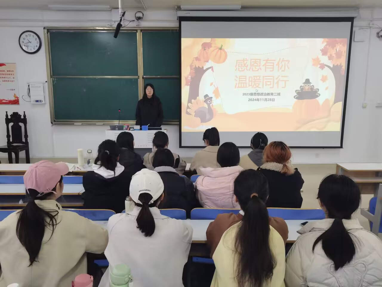 为培养青年大学生感恩心态,强调感恩的重要性,11月28日下午,ok138cn太阳集团5292023级思想政治教育二班在社科楼515教室开展“感恩有你,温暖同行”主题班会,本次班会由班长王慜初主持,全体二班同学参加。