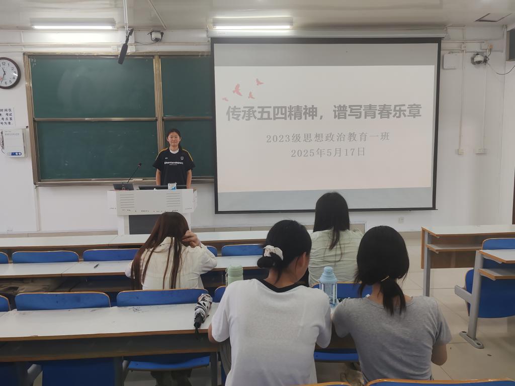 为进一步弘扬五四精神,激励和引导我班团员加强党团知识学习,5月17日下午,ok138cn太阳集团5292023级思想政治教育一班在社科楼514教室召开“传五四火炬,洒青春热血”主题团课。我院2023级思想政治教育一班全体同学共同参与本次团课,团课由团支书张卓主持。