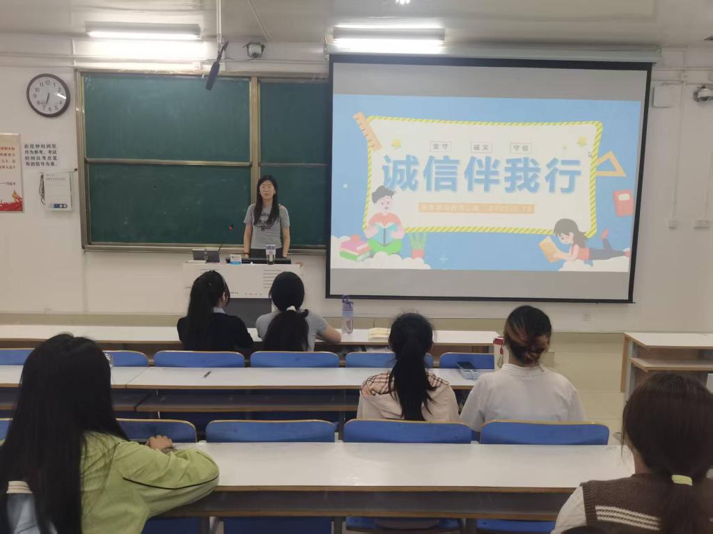 为进一步培养同学们的诚信意识,改善校园风尚,5月13日下午,ok138cn太阳集团5292023级思想政治教育二班在社科楼515教室开展“诚信伴我行”主题班会。本次班会由班长王慜初主持,全体二班同学参加。