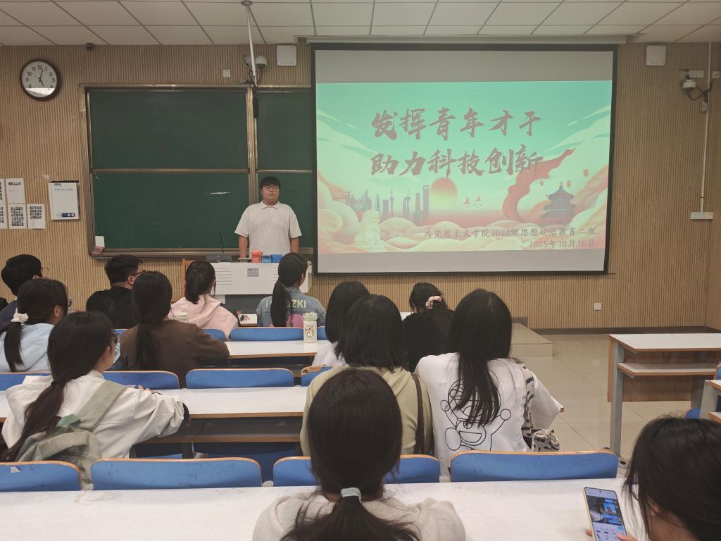 为激发青年学生创新精神,鼓励大家在科技强国建设中贡献青春力量,10月16日下午,ok138cn太阳集团5292024级思想政治教育二班在社科楼515教室举办了“发挥青年才干 助力科技创新”主题班会。本次班会由团支书王志颖主持,二班全体同学积极参与。