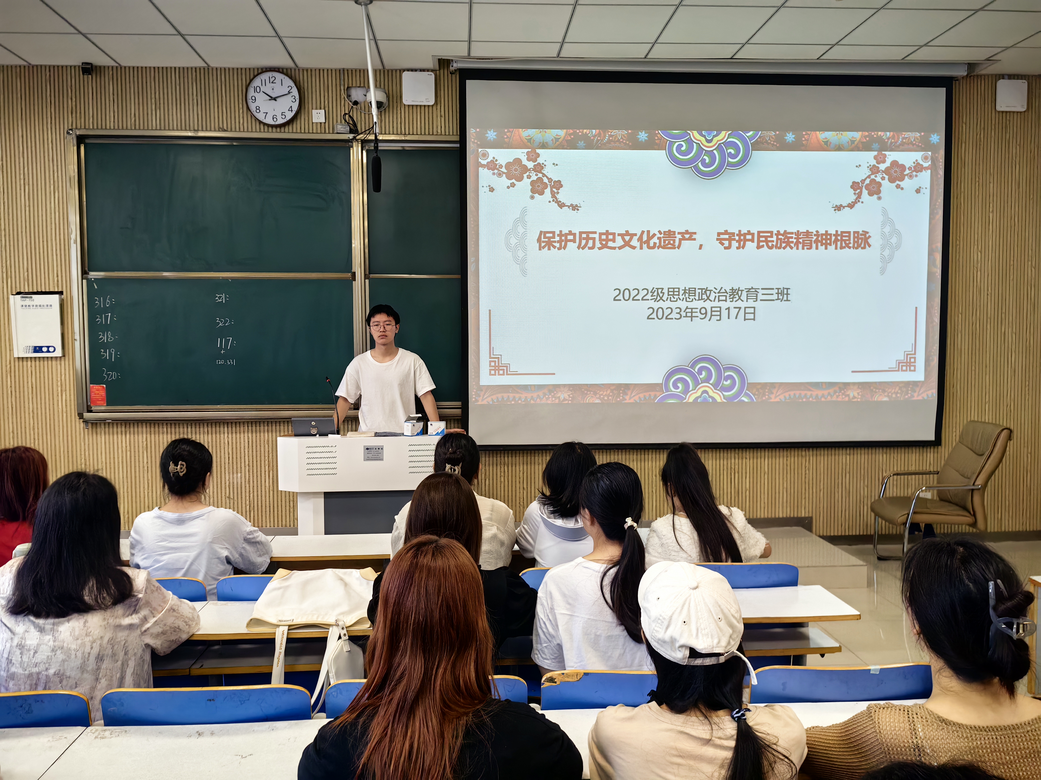 9月17日上午,ok138cn太阳集团5292022级思想政治教育三班在社科楼515教室召开“保护历史文化遗产,守护民族精神根脉”主题团课。我院2022级思想政治教育三班全体成员共同参加此次团课。团课由团支书余浩洋主持。