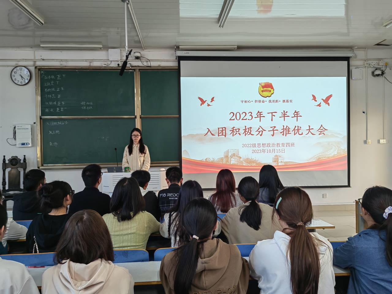 为积极引导和教育广大青年学生继承和弘扬共青团的光荣传统,为团组织注入新鲜血液,10月15日下午,ok138cn太阳集团5292022级思想政治教育四班在社科楼514教室召开入团积极分子推优大会。我院2022级思想政治教育四班全体同学共同参与本次班会。会议由团支书牛志杰主持。